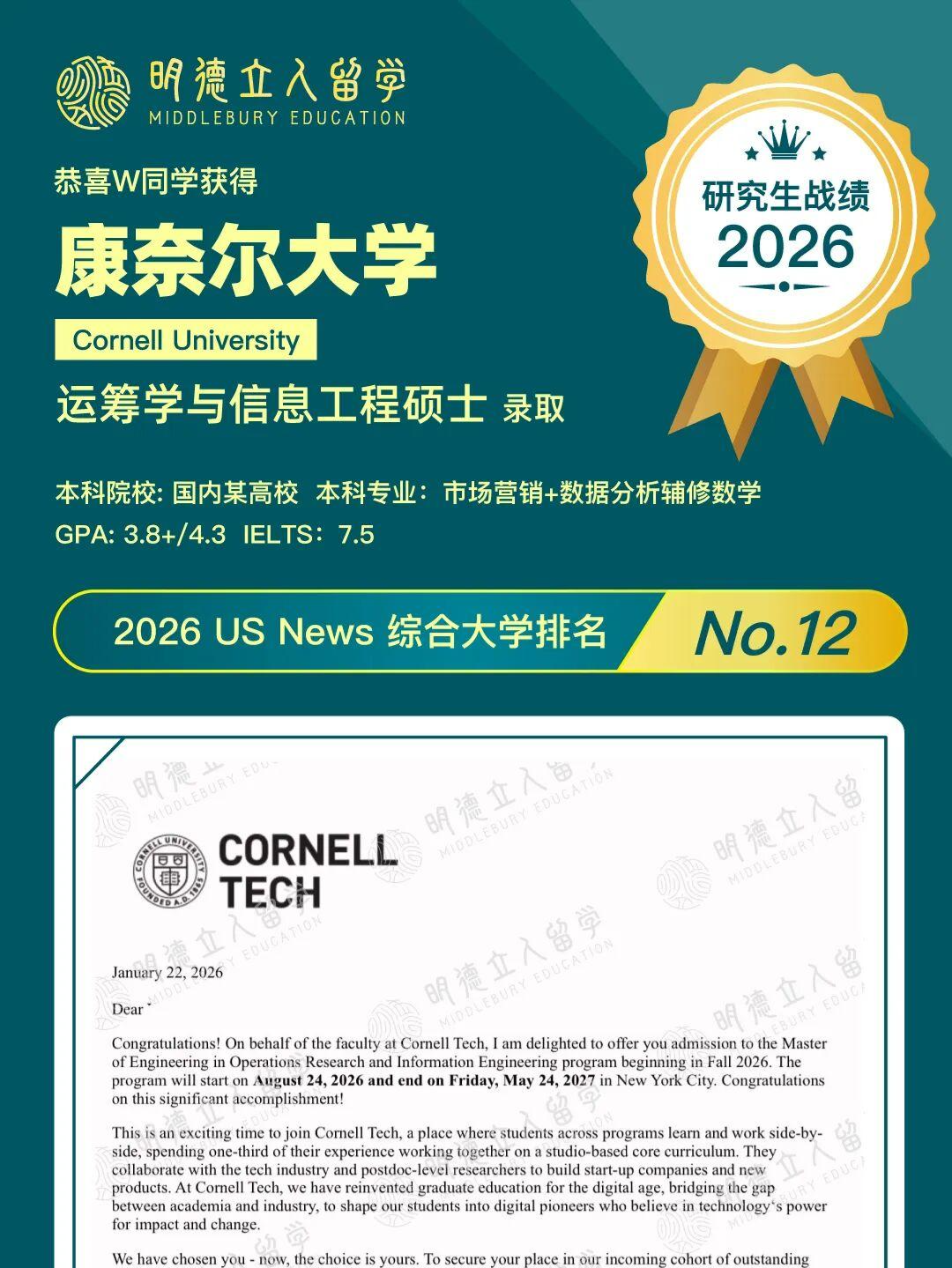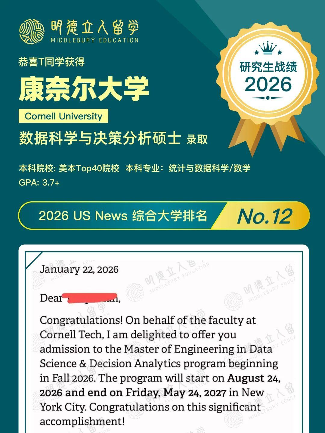 美国研究生新开的项目,往往竞争压力相对较小,很可能是步入名校的"捡漏"窗口,藤校康奈尔也不例外!