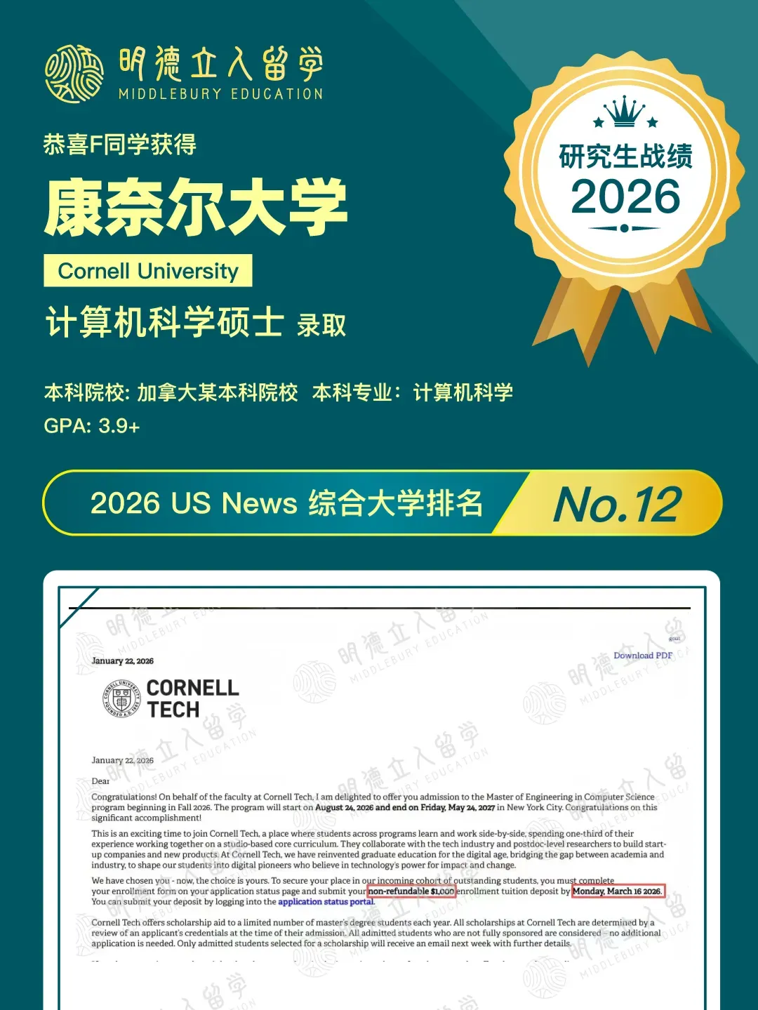 于是,在25年的10月份,F同学正式决定申请美国研究生,与明德携手,冲击计算机科学顶尖项目。