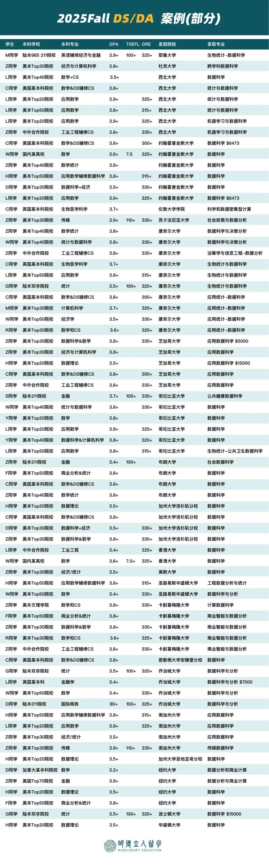1、GPA:尤其是数学和统计相关的课程分数不能低,申请前30的学生GPA达到3.6+,冲藤和顶校的学生达到3.8、3.9+。