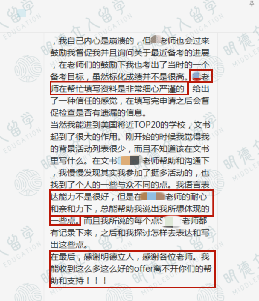 这段在最无助时建立起来的信任,让P同学在5年后决定申请研究生的时候,毫不犹豫地再次选择了明德!