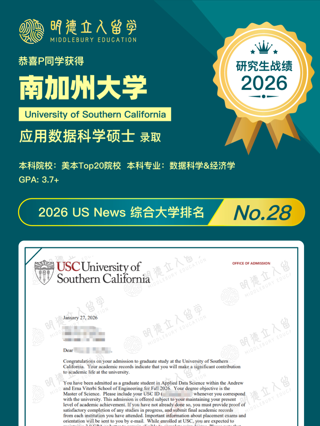 因此在选校方面:明德老师通过多年的申请经验,和对学生长期背景的了解,帮助TA明确了选校清单。