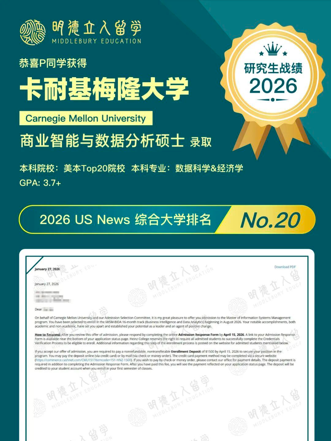 在CMU BIDA 这样的项目上,老师提前与学校确认GRE豁免路径,确认可行后再推进申请。也着重匹配了一些更看重工作和实习经历的项目。