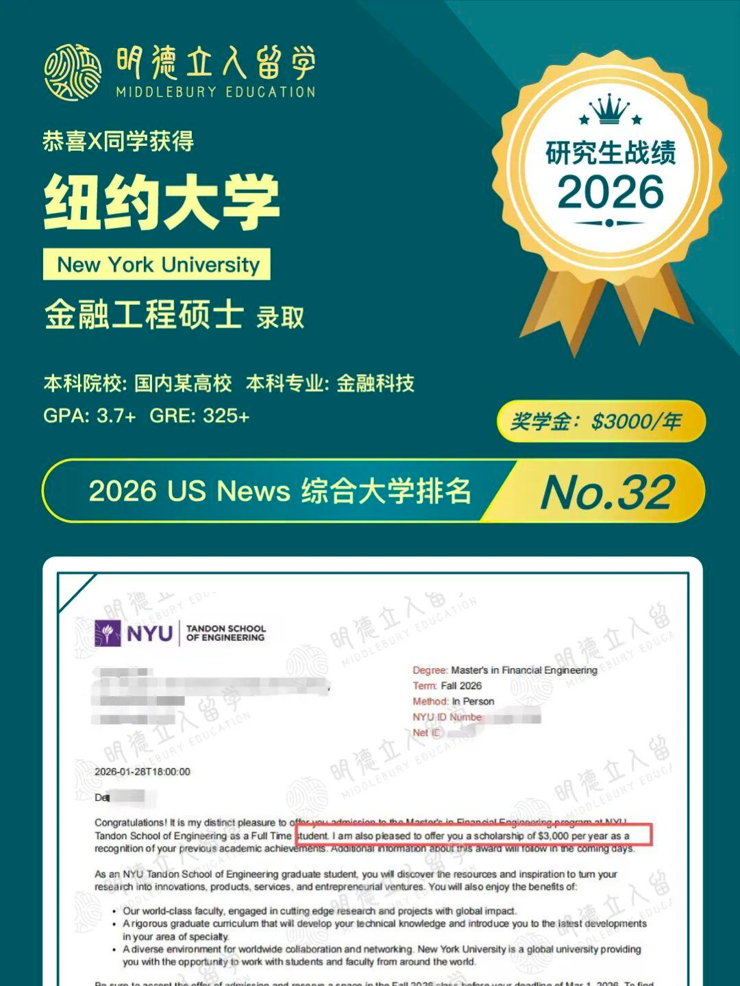 纽大金融工程硕士2026年QuantNet第11名!申请难度逐年拔高!