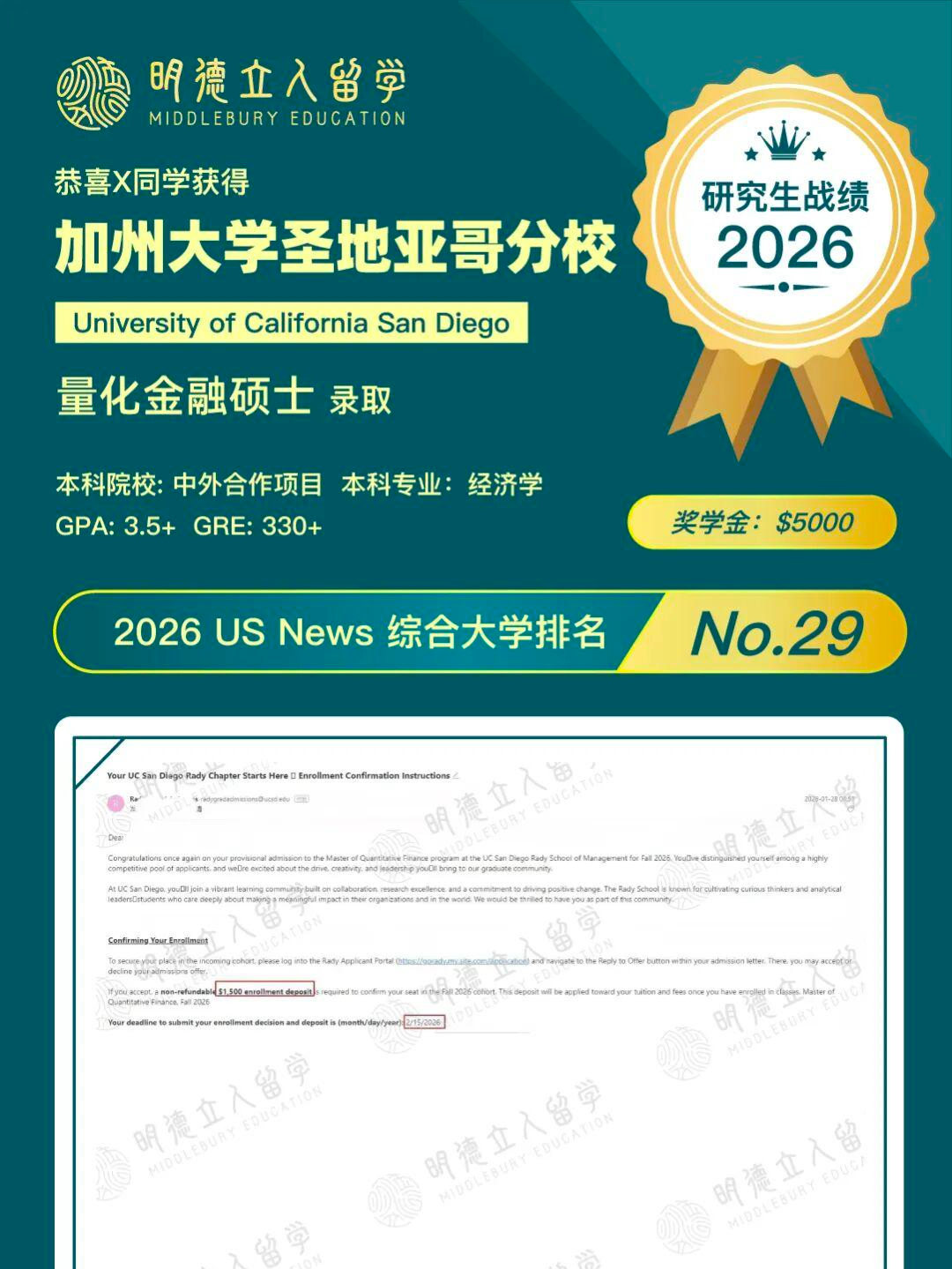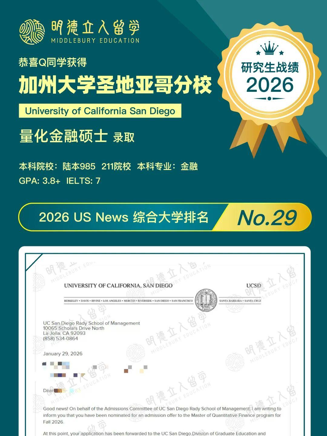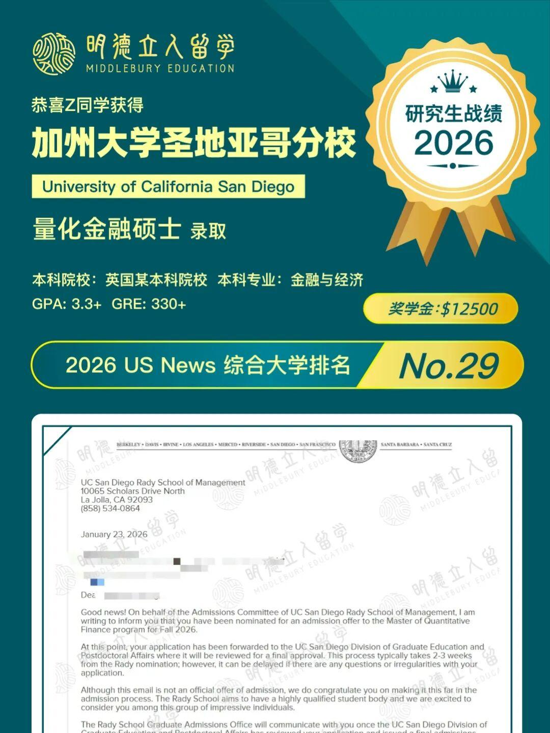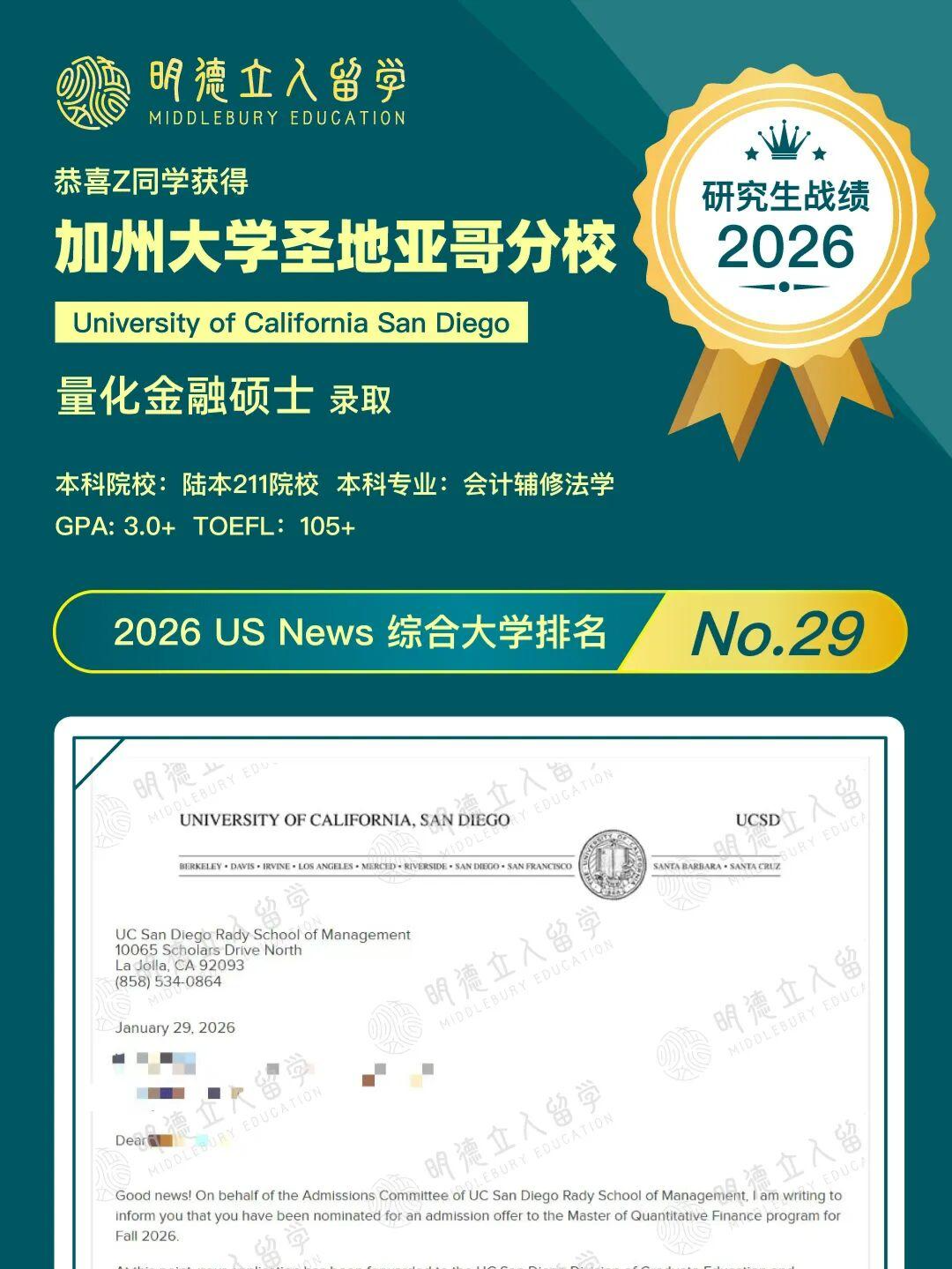 截至2026年1月30日,明德共计拿下106枚美国研究生录取offer!奖学金达112万!