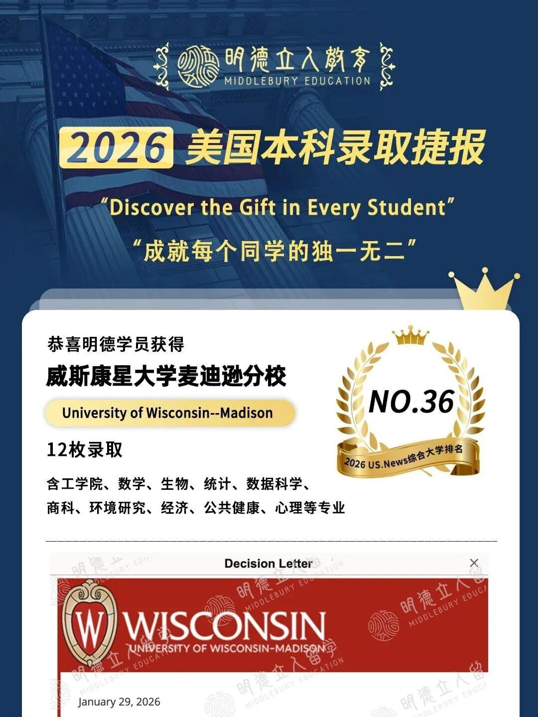 今天是威斯康辛大学麦迪逊分校EA发榜