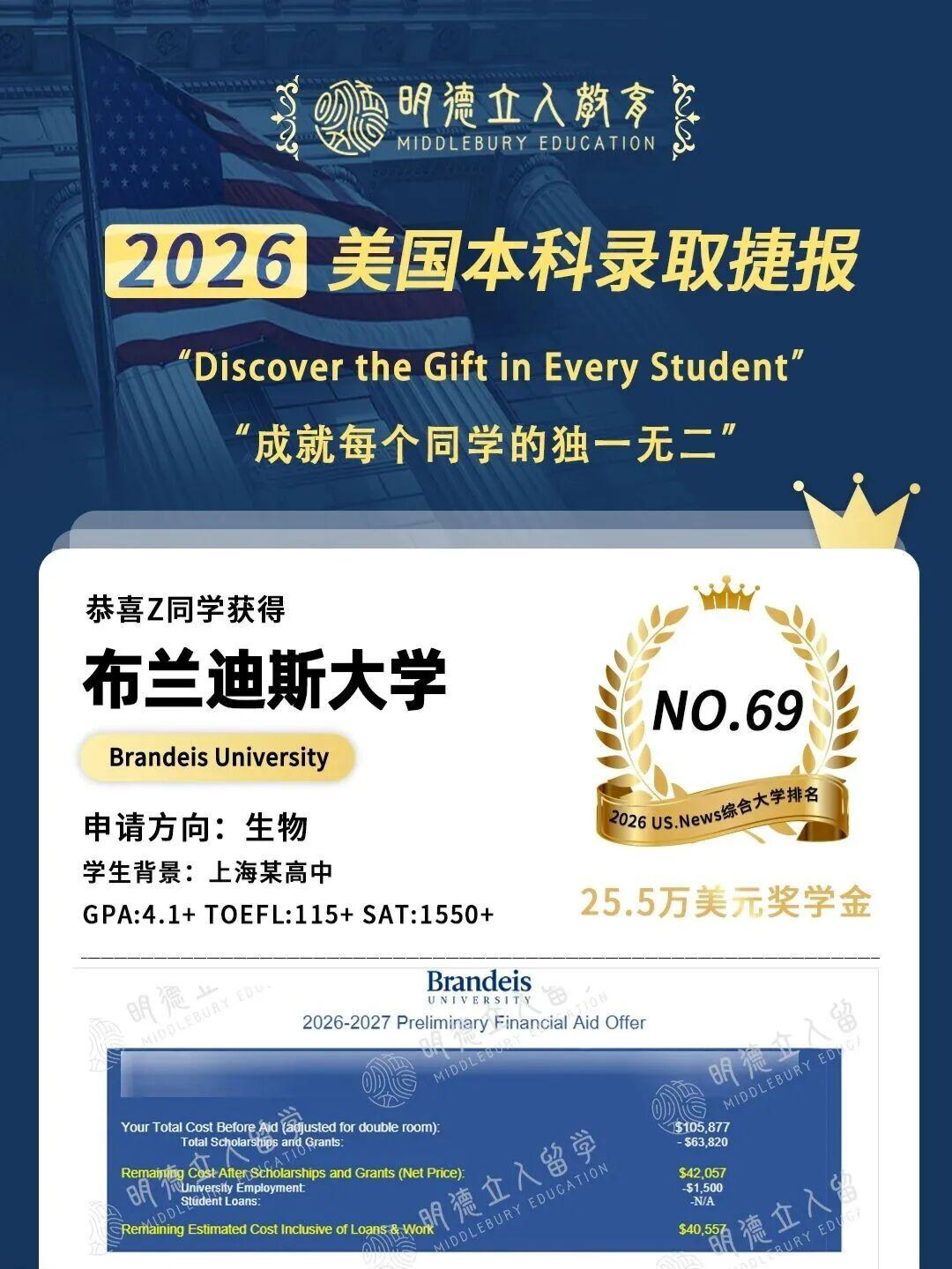 25.5W美元奖学金录取!