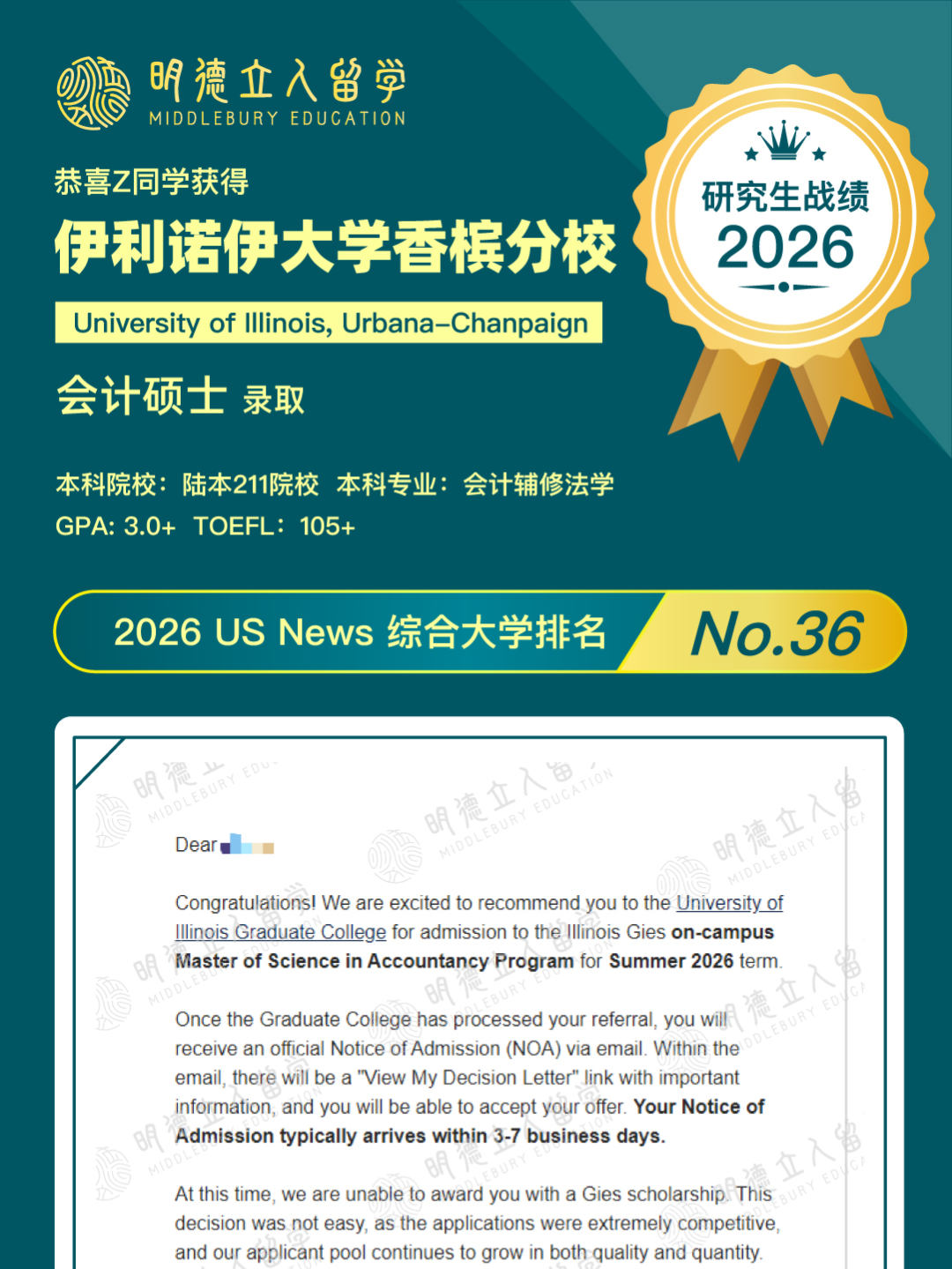恭喜明德学子Z同学!从GPA3.0+、陆本出发,成功斩获——
