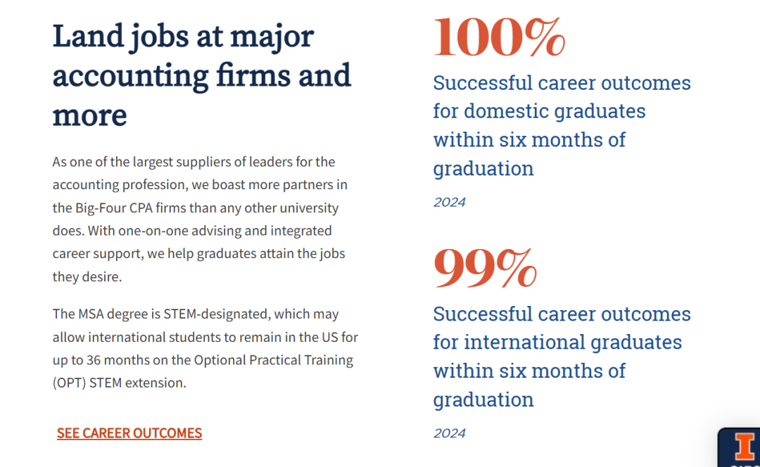 UIUC开设的会计学硕士(MS in Accountancy (MSA))专注于提升你的会计专业知识,成为有目的地的数据驱动决策者,并为CPA考试做准备。