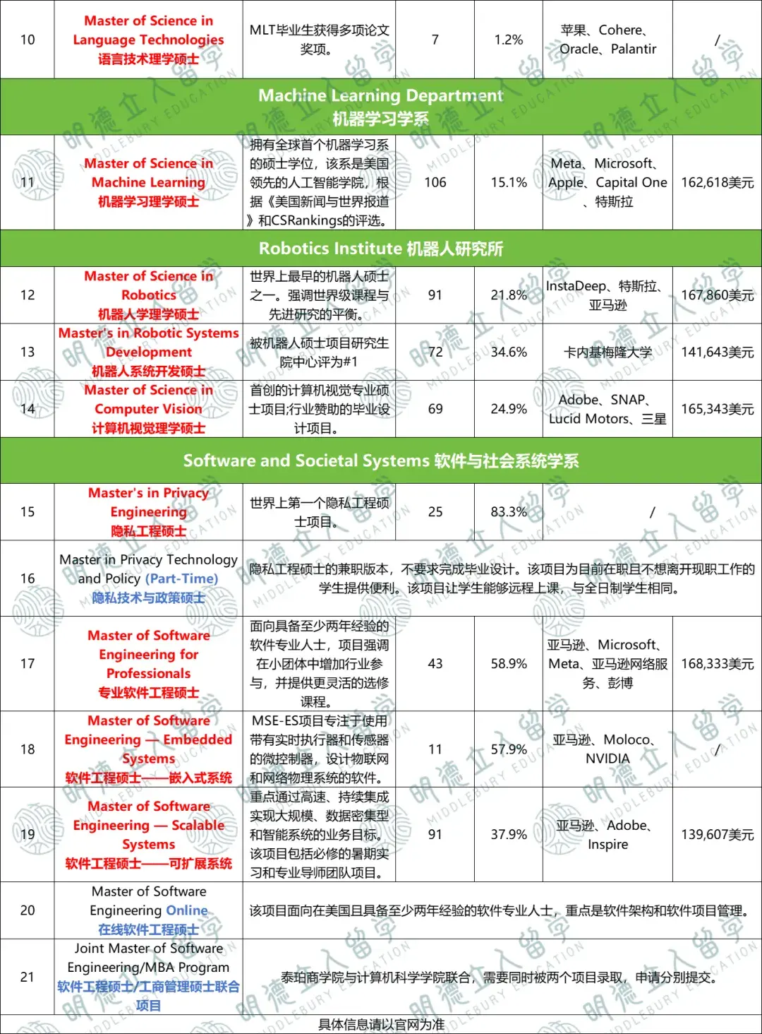 从MCDS毕业的学生,在信息技术、软件服务以及社交媒体等前沿领域的头部企业中,备受青睐,能够胜任软件工程师、数据科学家以及项目经理等关键岗位。