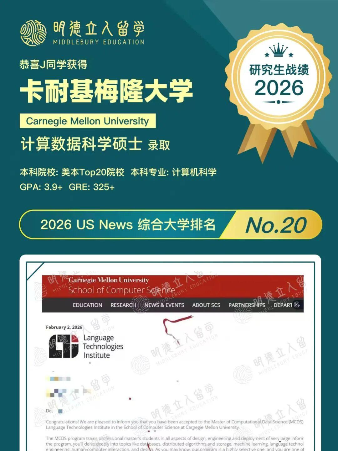 恭喜明德学子J同学!成功拿下——