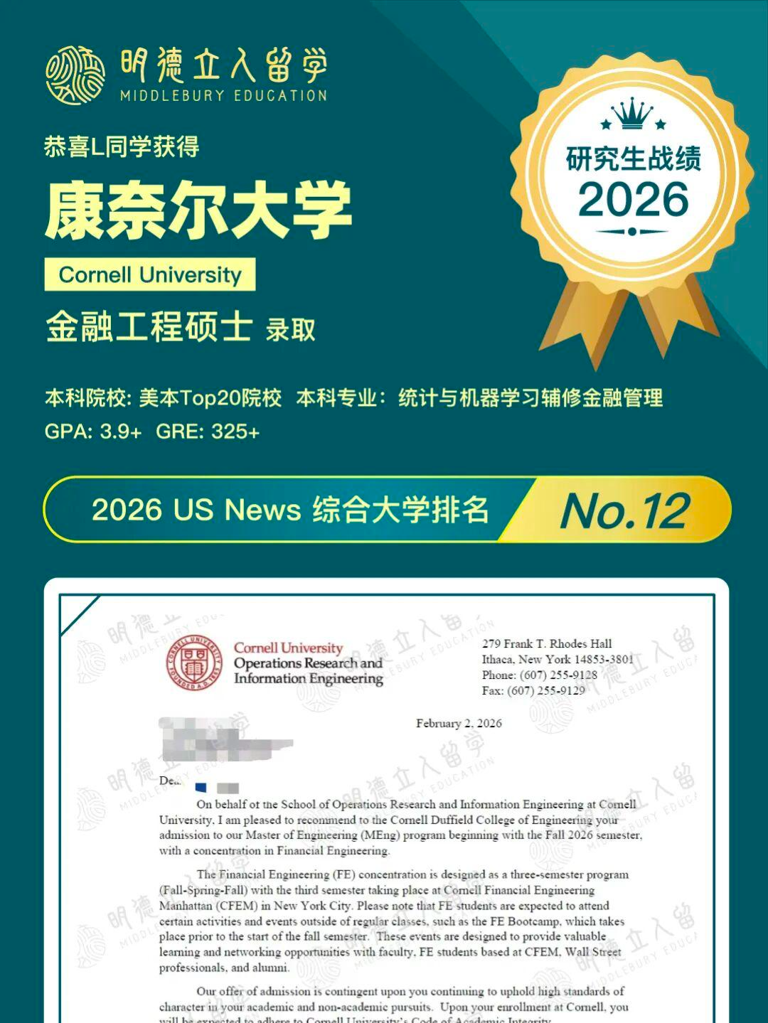 康奈尔的金融工程硕士是一个以“就业”为导向的项目,2026Quantnet排名全美第11!