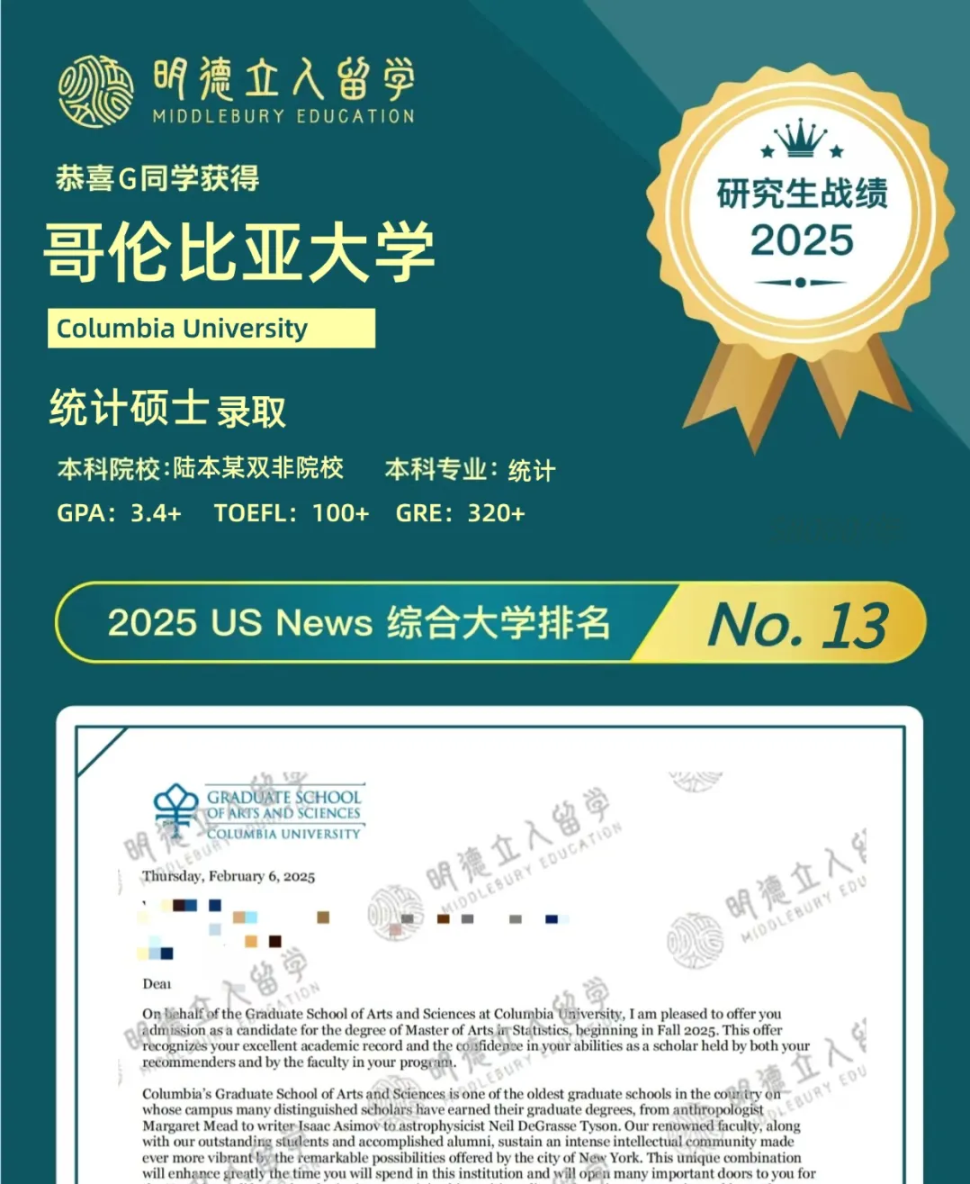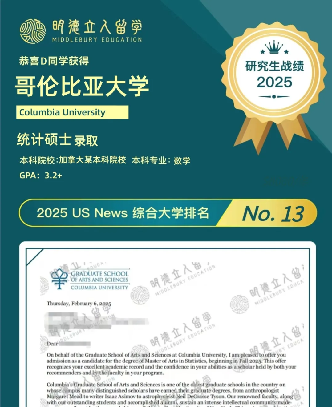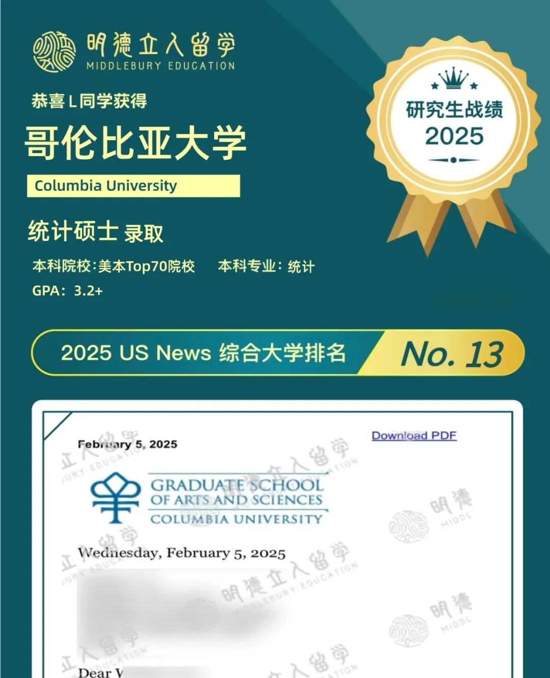 恭喜明德立人学子Z同学!从GPA3.3+出发,成功斩获——