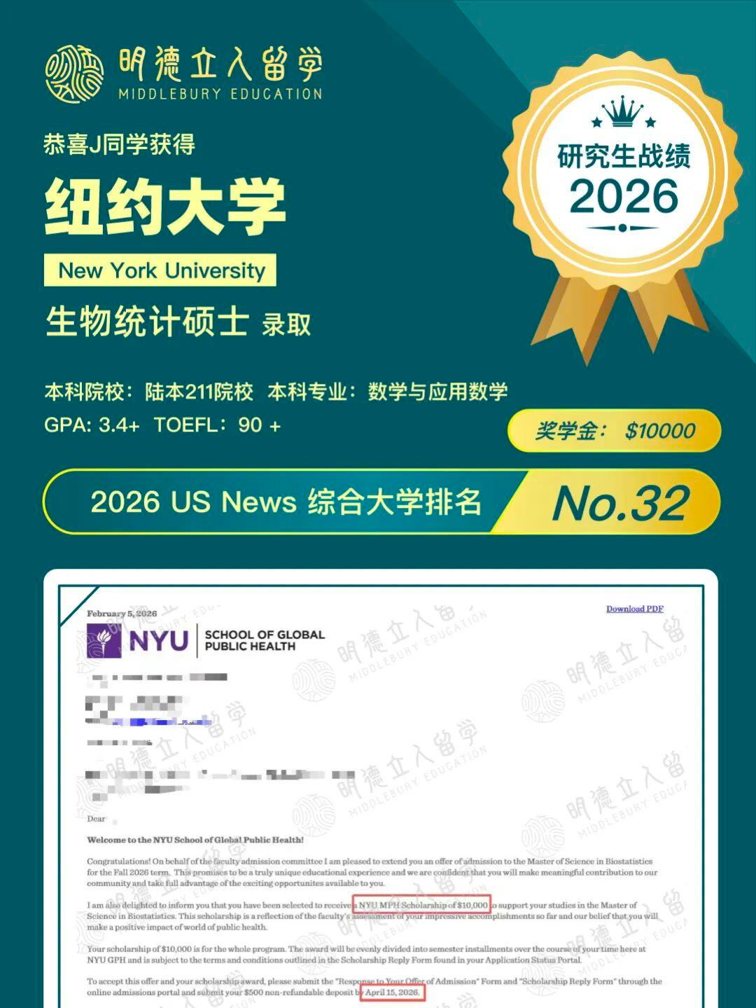✅1枚 纽约大学-生物统计,带奖6.9万;
