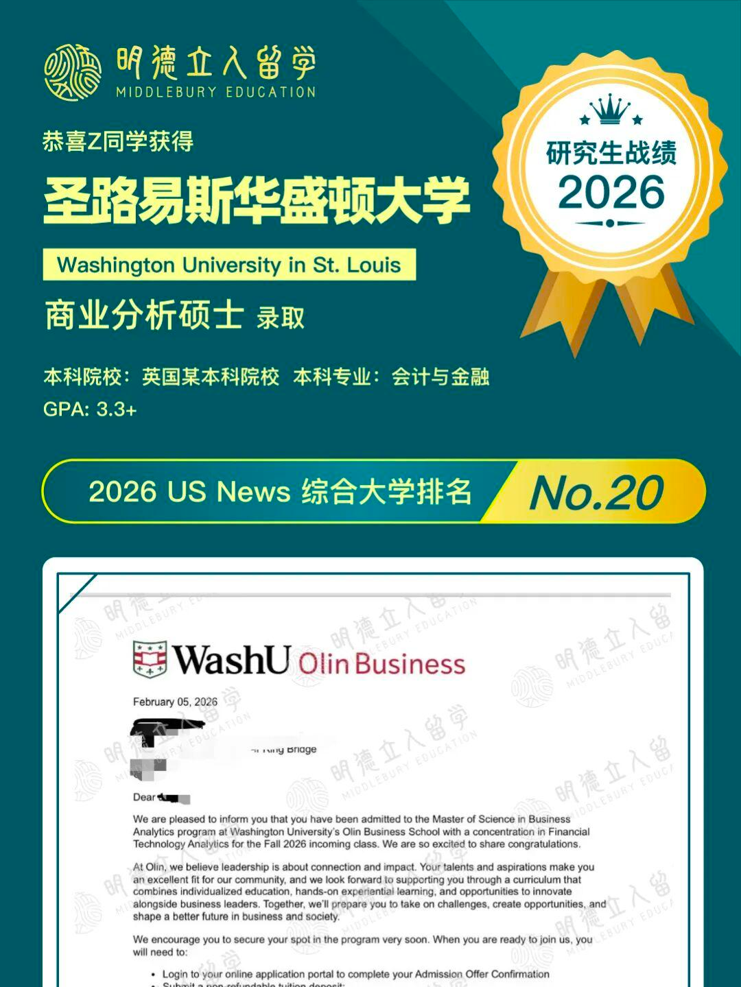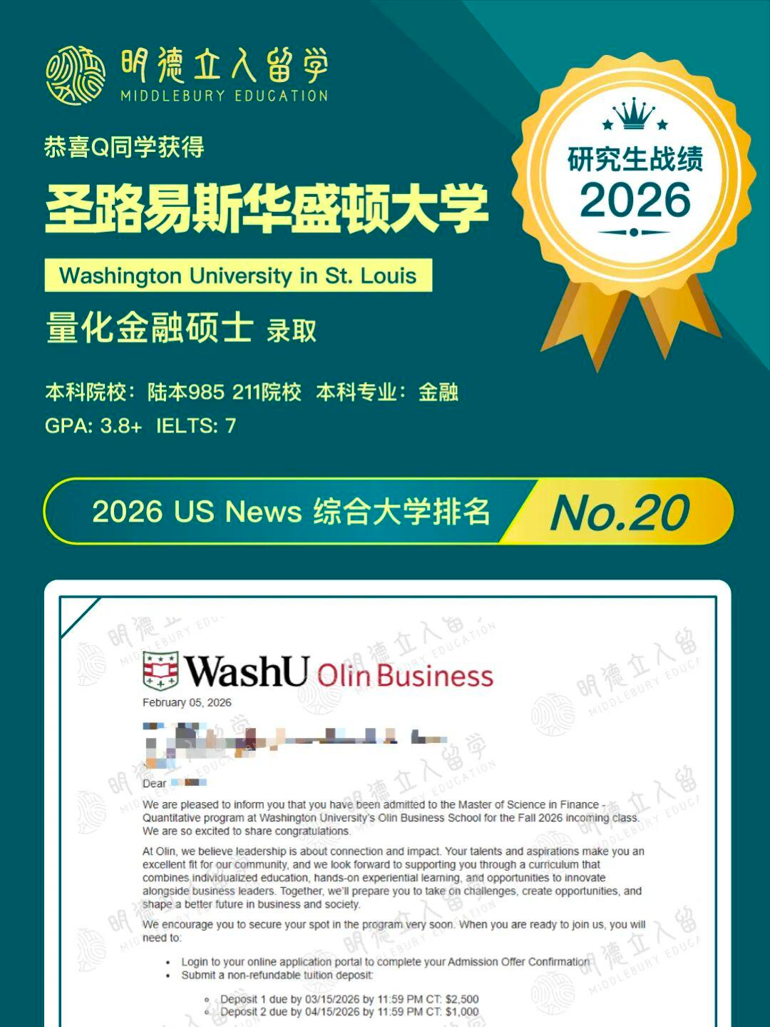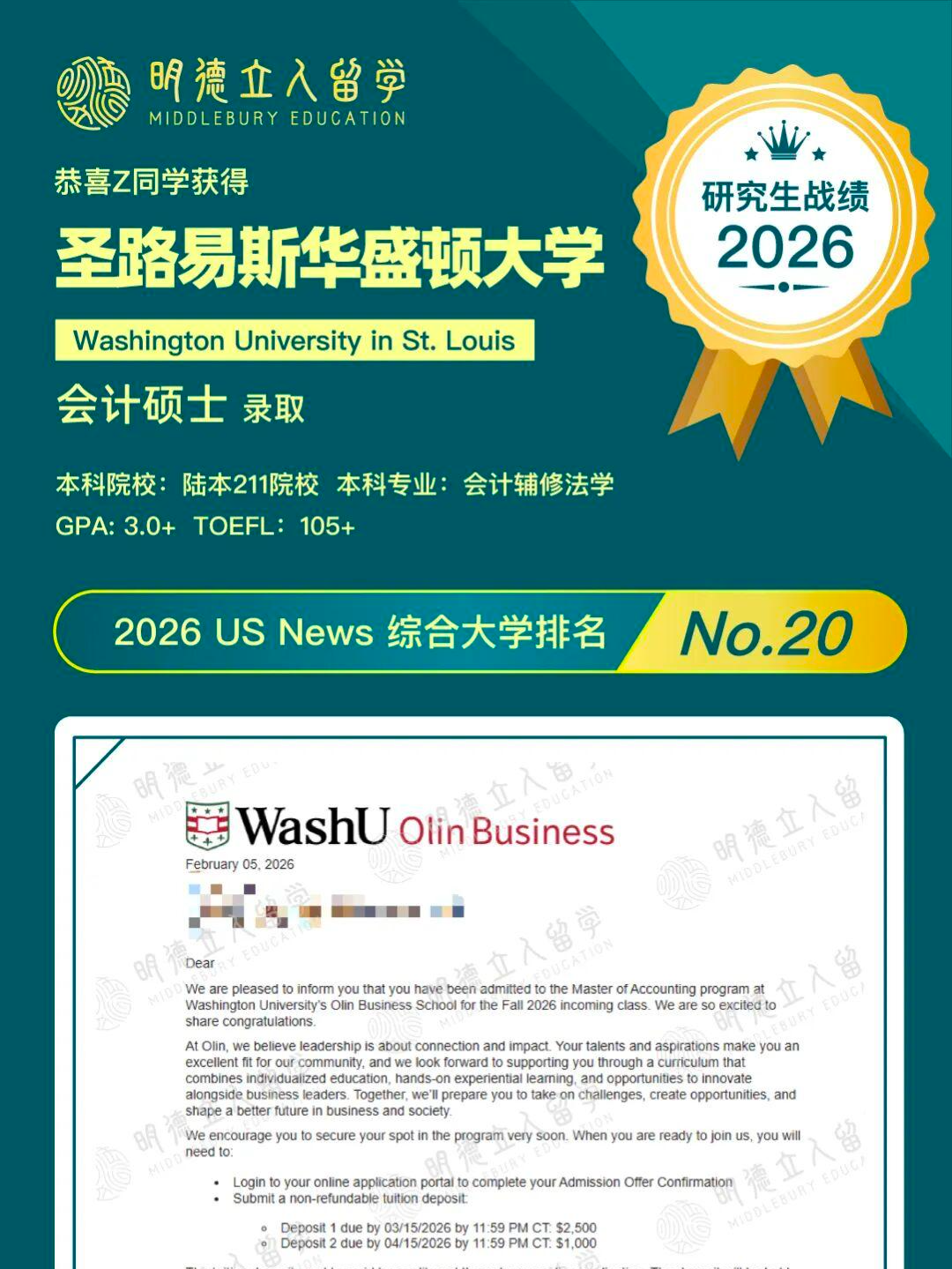 ✅3枚 WUSTL,陆本、英本、GPA3.0+,斩获会计、商业分析、量化金融offer;
