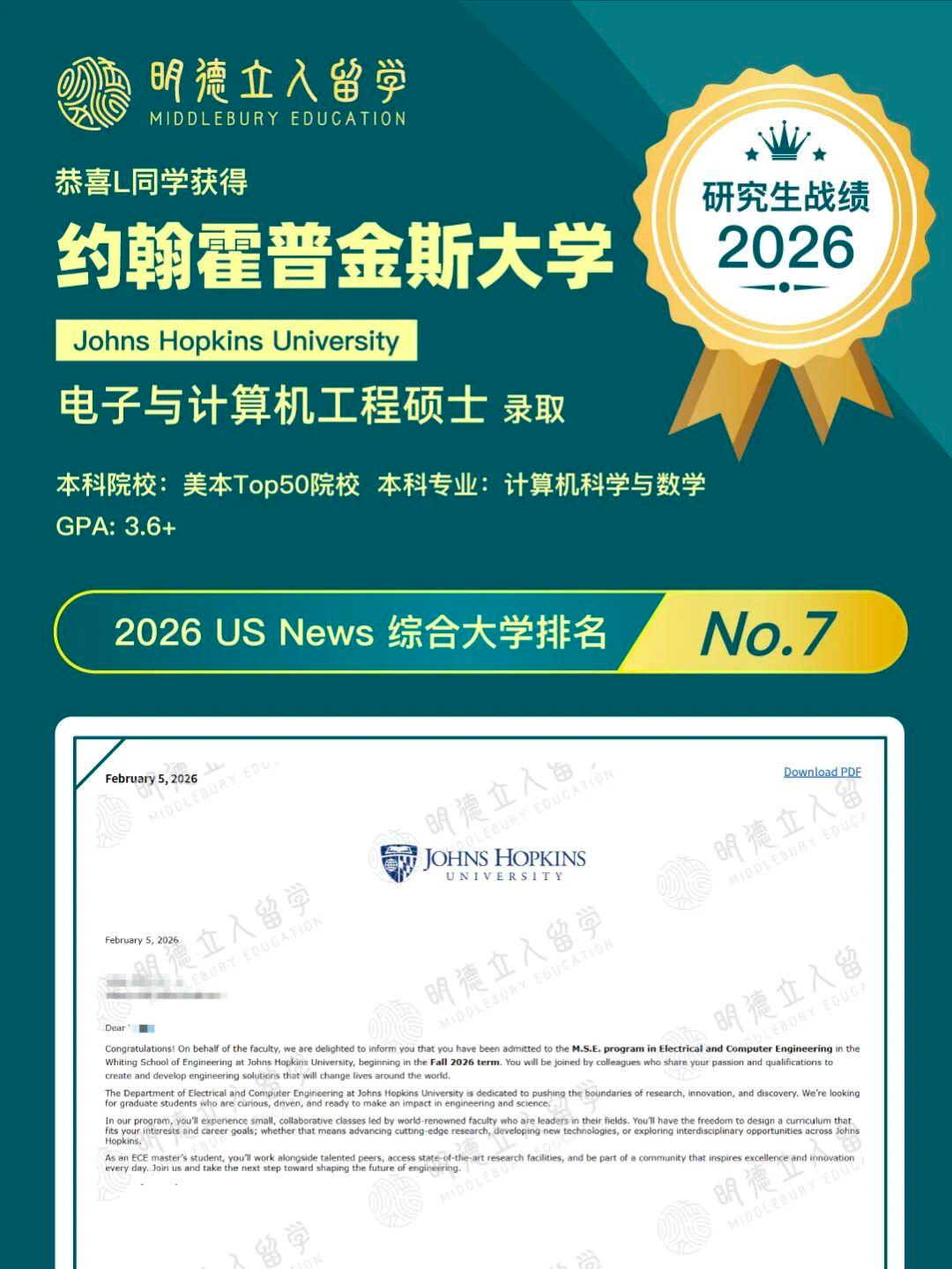 JHU 9连录+10.6万奖!中外合办/美本T70/陆本上岸全美T7!