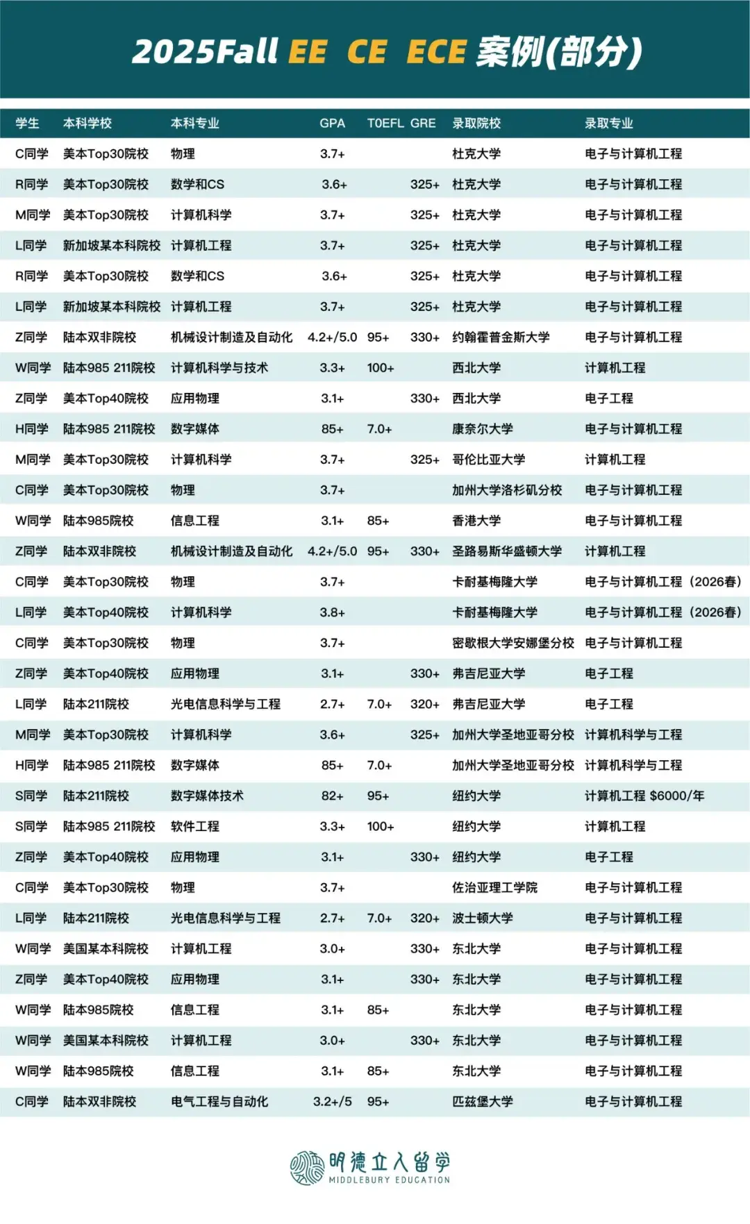 明德往期EE/CE/ECE录取案例合集(部分)
