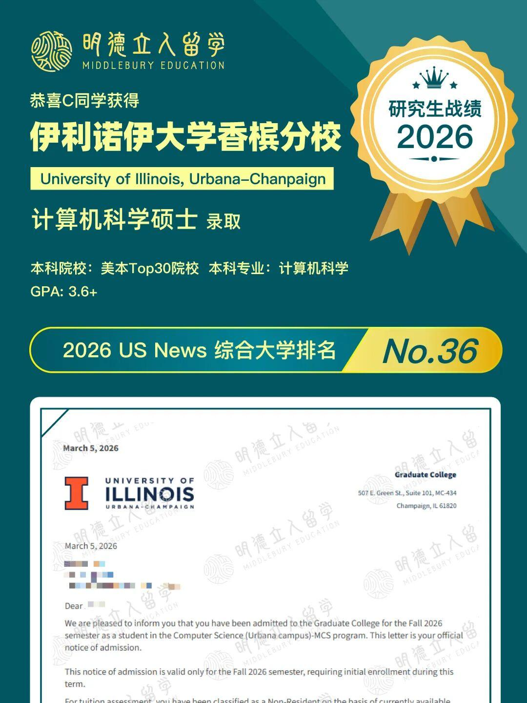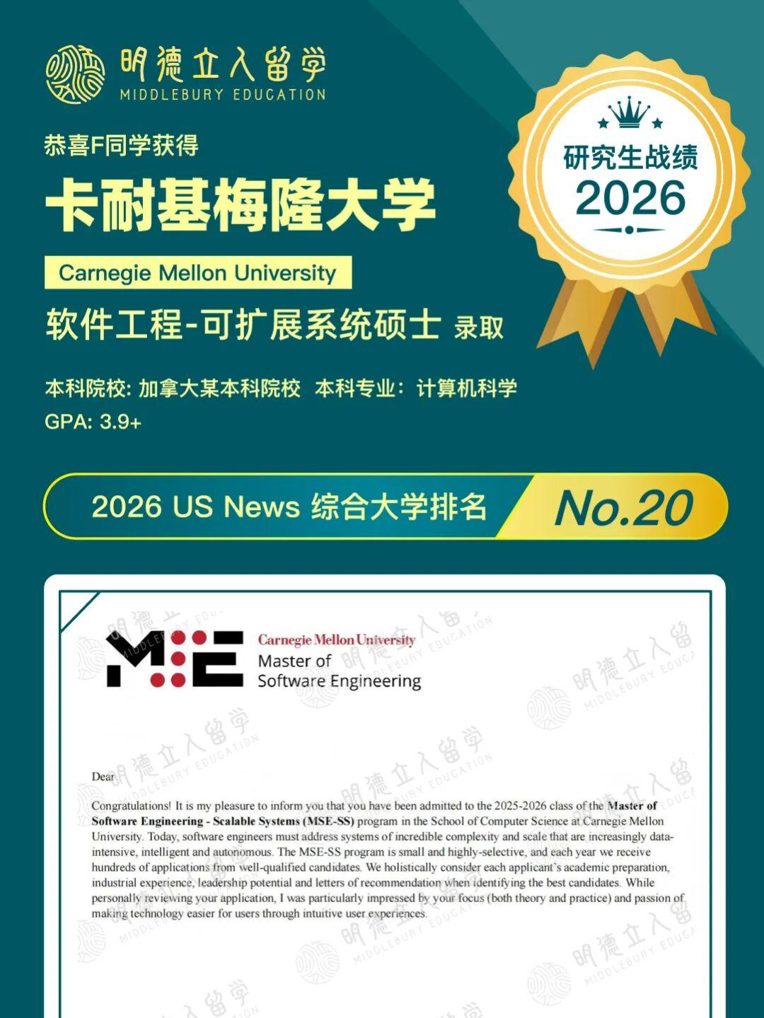 恭喜明德学子F同学,第三枚卡耐基梅隆大学的录取到!