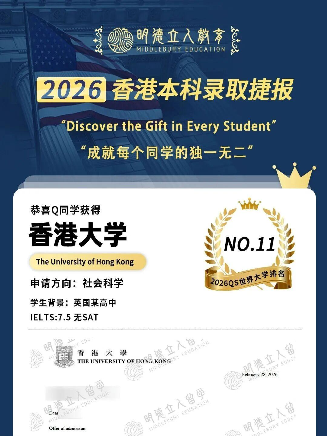 恭喜明德学员 Q同学斩获
