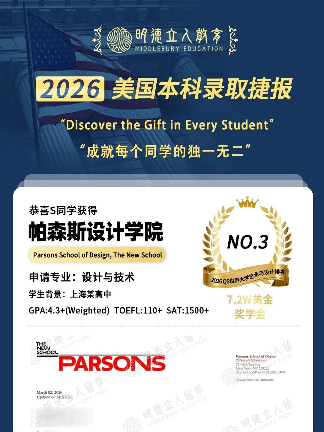帕森斯设计学院本新学员档案