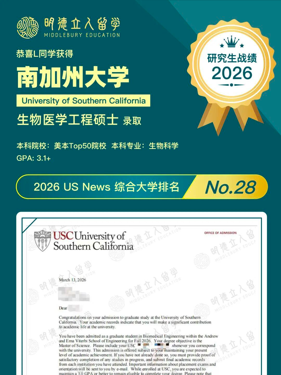 恭喜明德学子L同学和J同学,从陆本、GPA3.1+出发,重磅斩获——