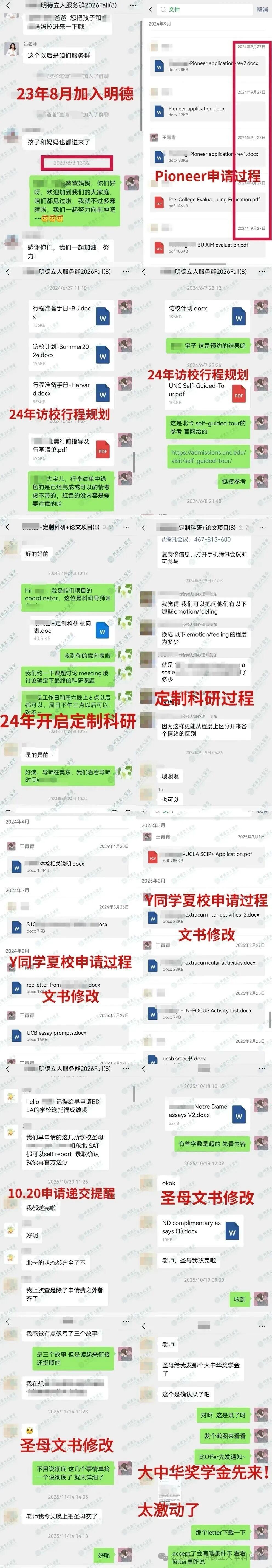 所以明德老师在给他们规划的时候,除了深度沟通挖掘每个学霸自己的特质与兴趣去取长补短,Y同学就是如此,在23年8月,10年级的时候进入明德,期间申请了3段线下夏校,Pioneer,参与明德定制科研,两次暑假访校,以下Y同学申请服务过程
