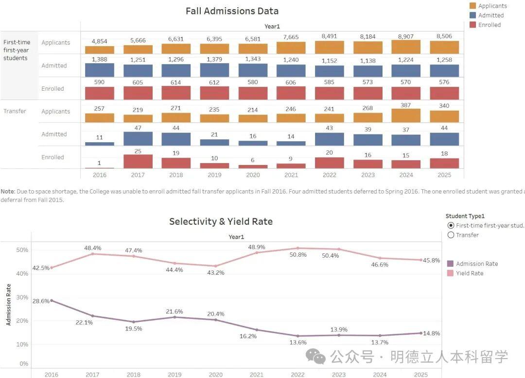 而国际生申请人数从2023fall的2,262人攀升到了2025fall的3,132人,增幅近40%,但录取人数却从143人降至107人,导致国际生录取率从6.32%暴跌至3.42%。