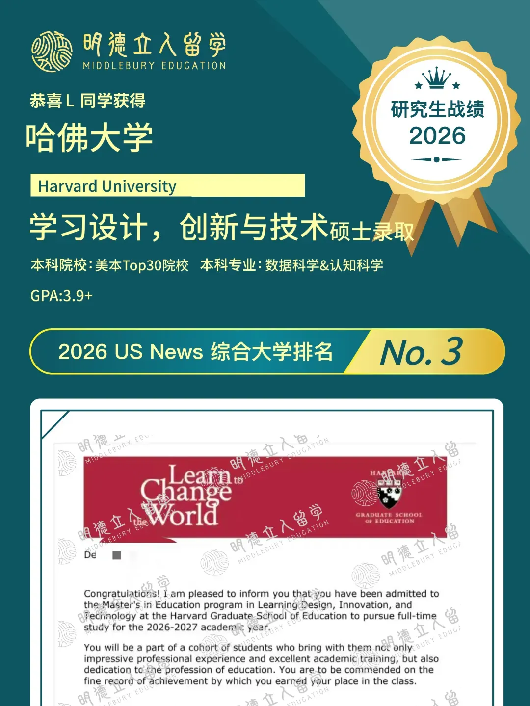L同学录取结果,是今年申请季里极为亮眼的一份答卷!