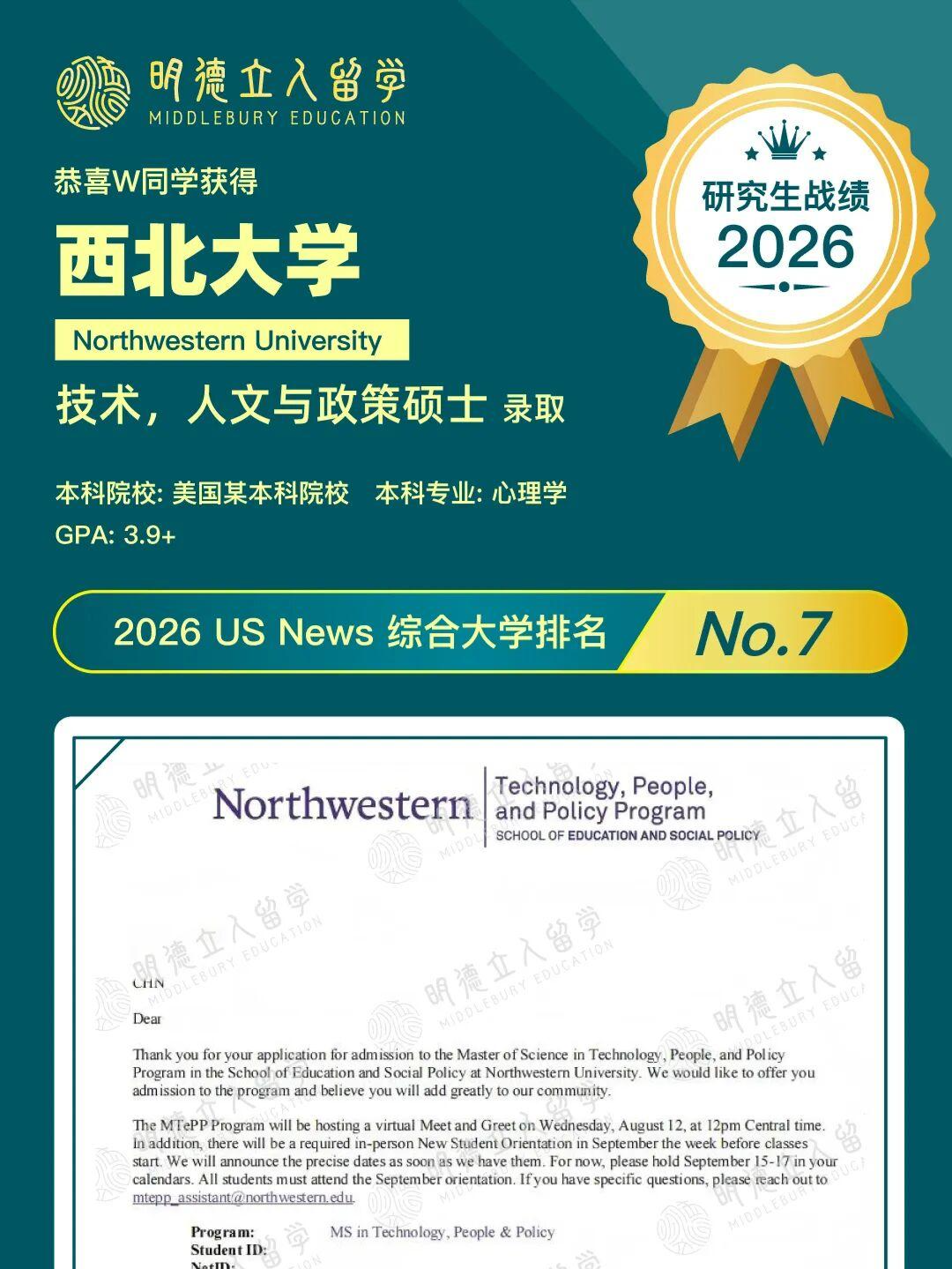 恭喜明德学子W同学,申请季签约,自考本科出发,26Fall第五枚offer到!