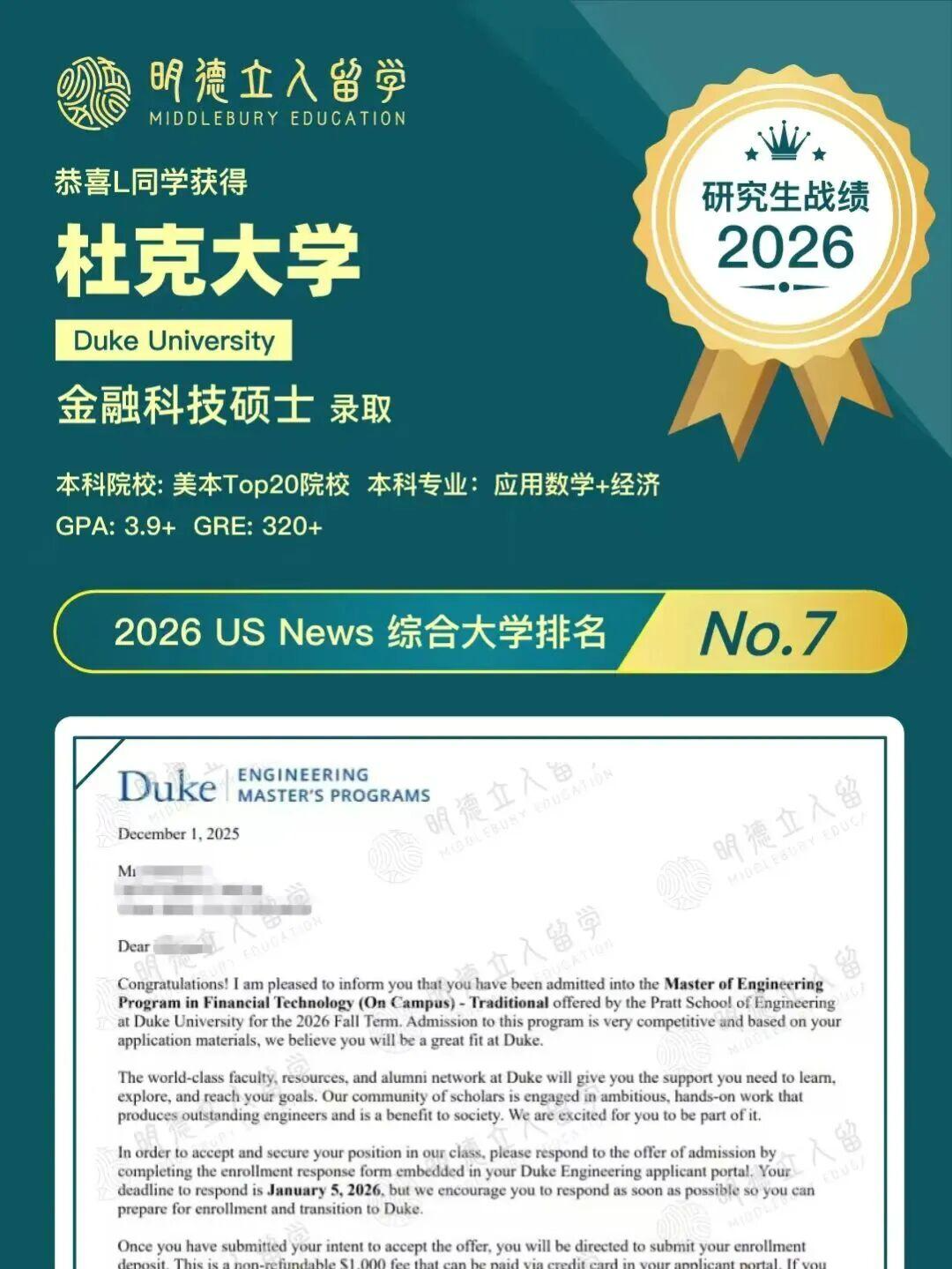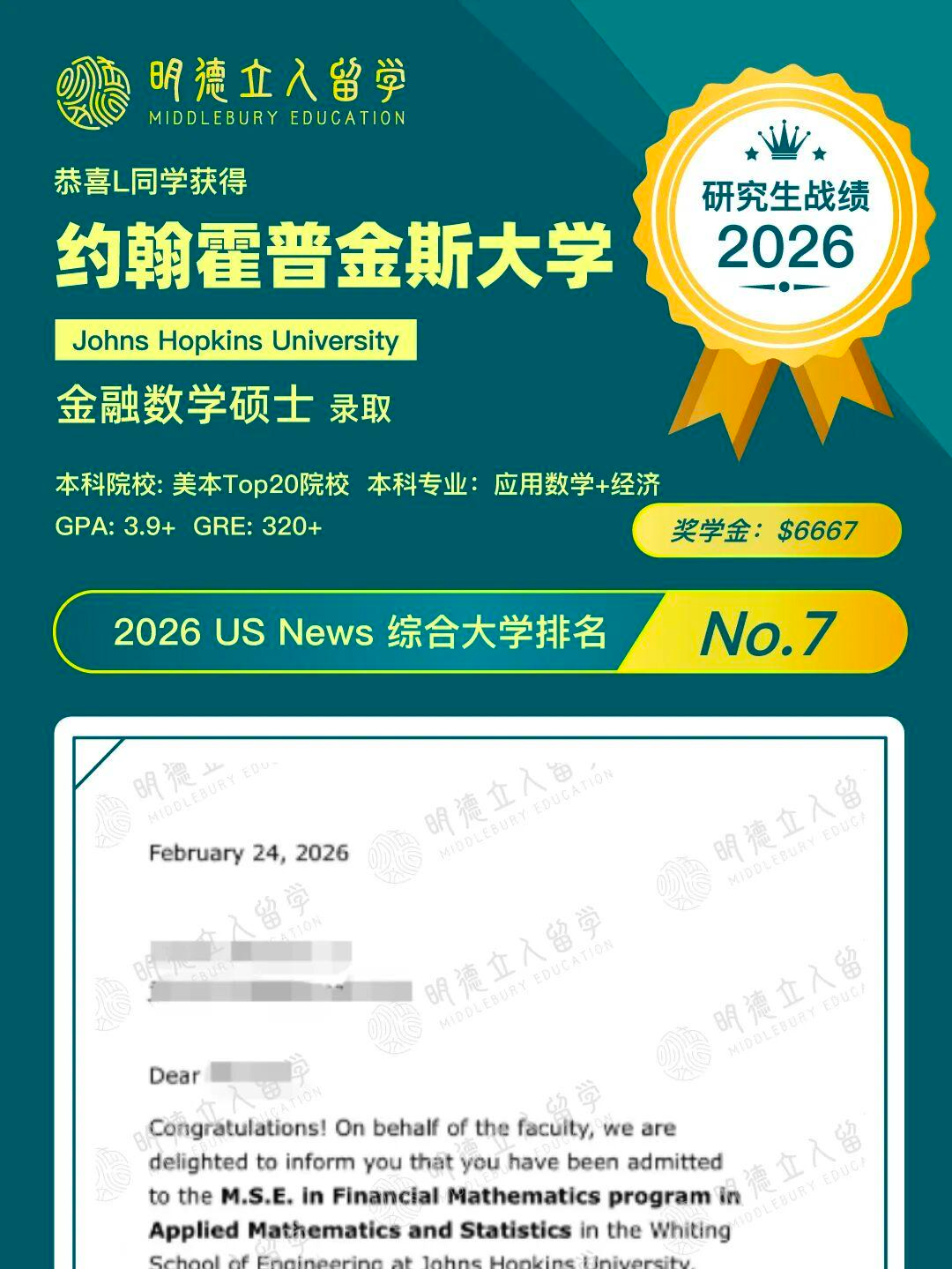 26Fall,L同学5枚录取均为Top10!宾大、杜克、西北、JHU...