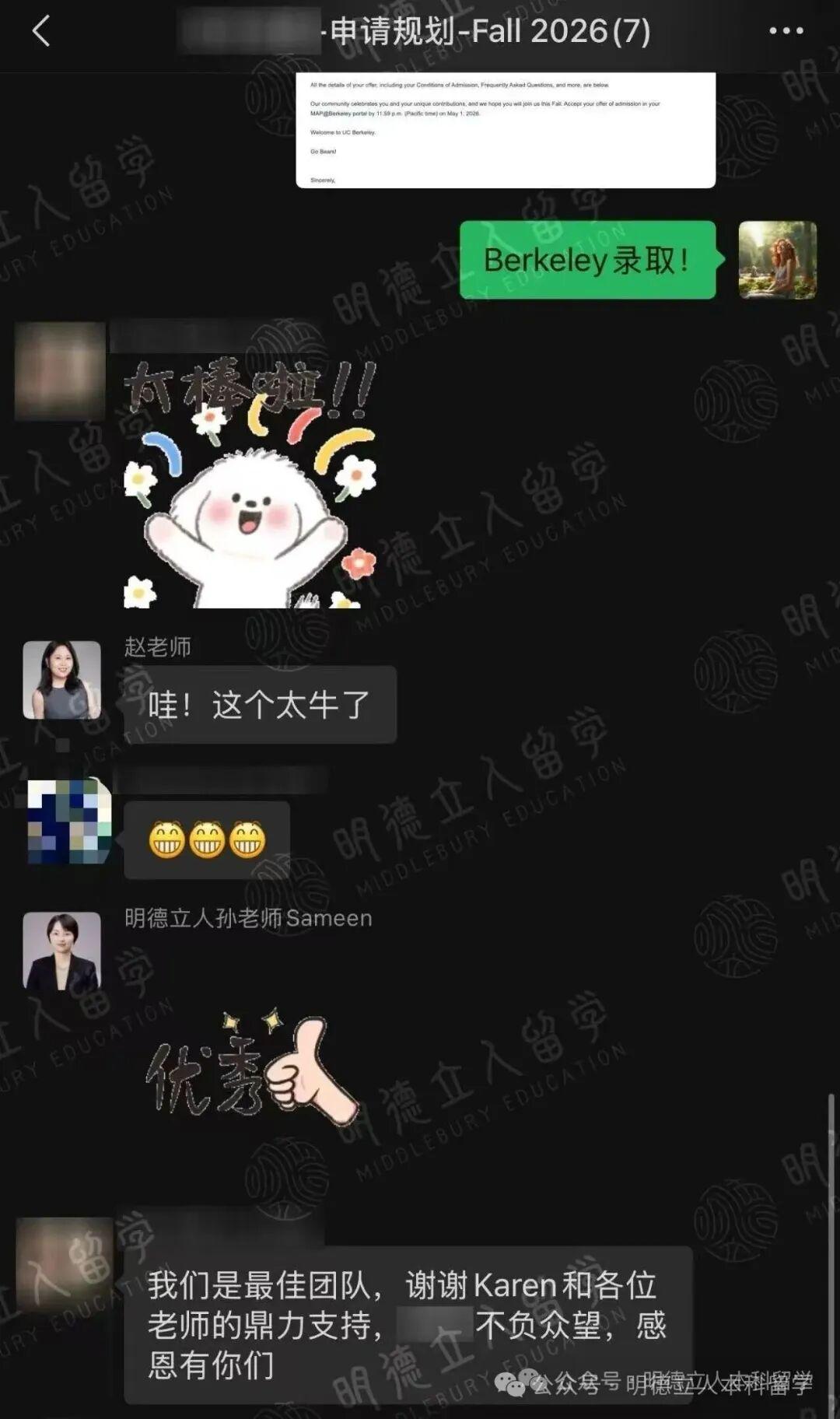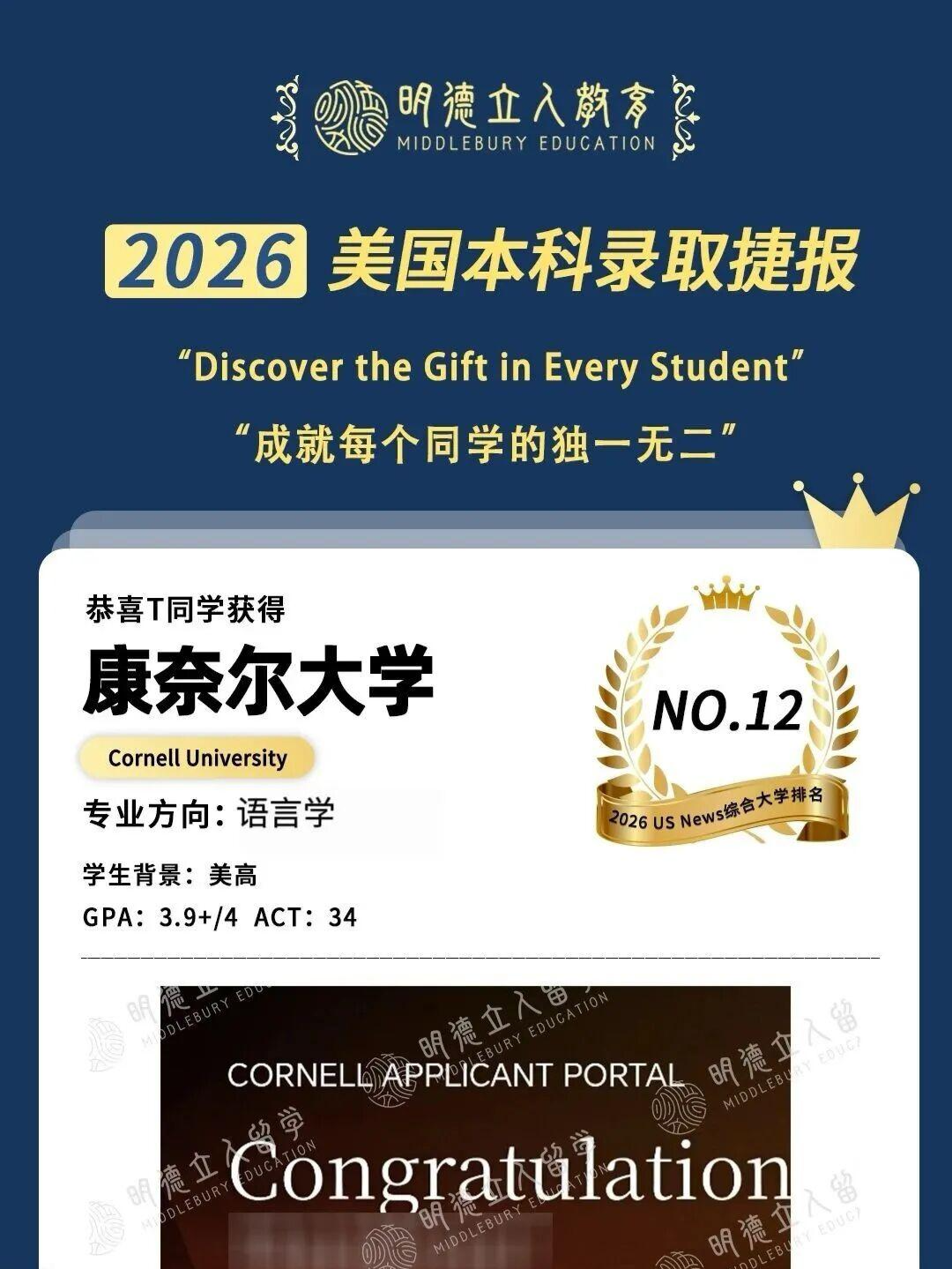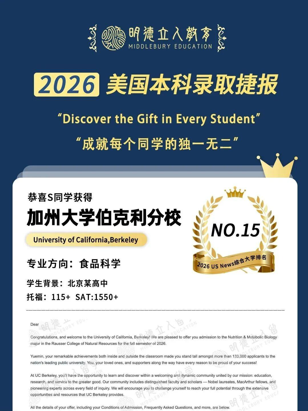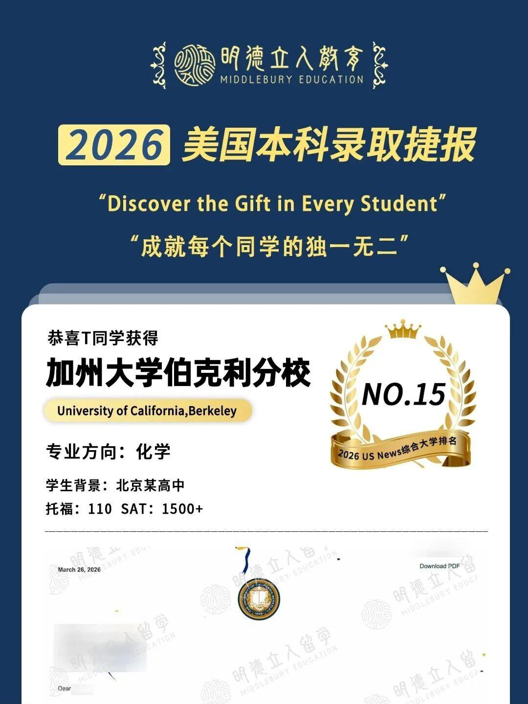 3枚藤校康奈尔大学、10枚公立第一加州大学伯克利分校(UCB)录取!!