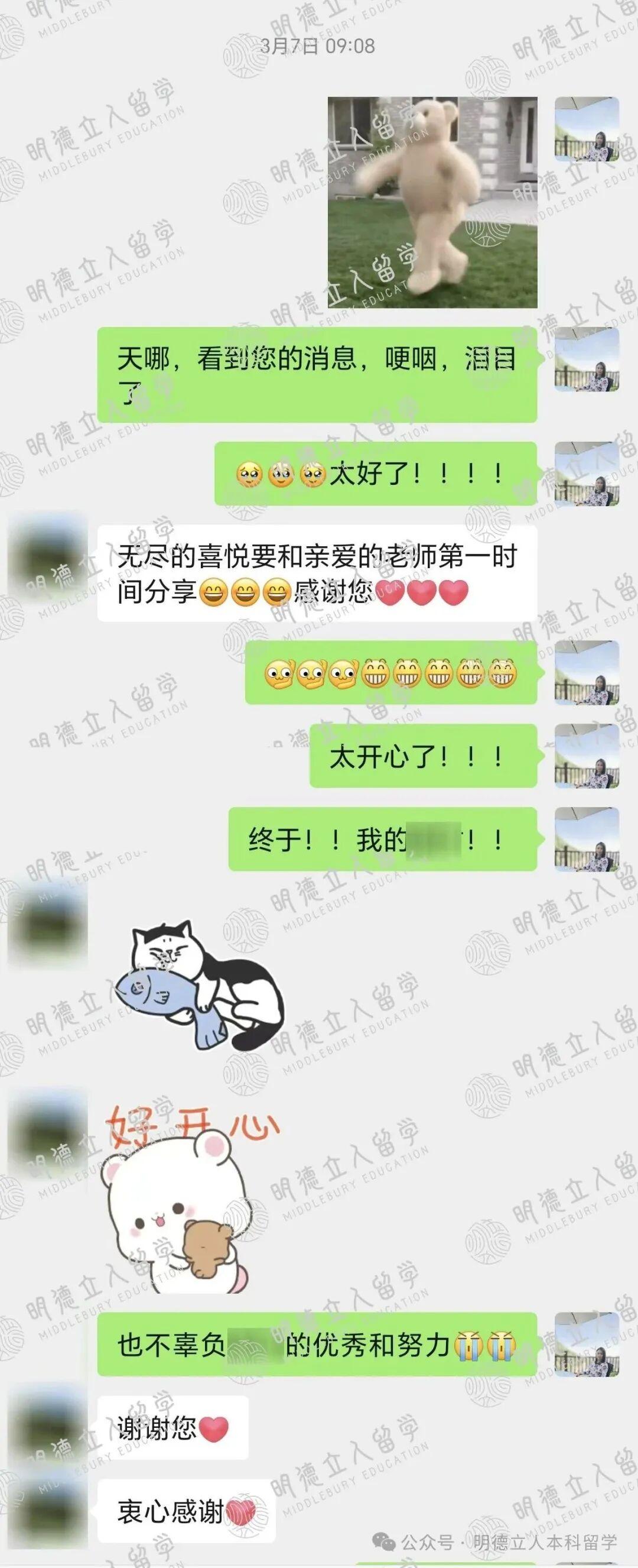 “无尽的喜悦要和亲爱的老师第一时间分享”、“美本本来就是一个确定性很差的东西,感恩这个最好的结果和最好的你们”,相信优秀的B同学一定会如妈妈寄语一样:“用好这个资源,走得更远更好”!祝福