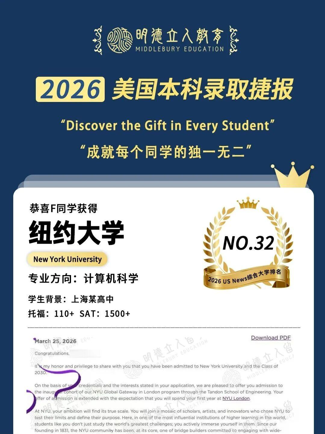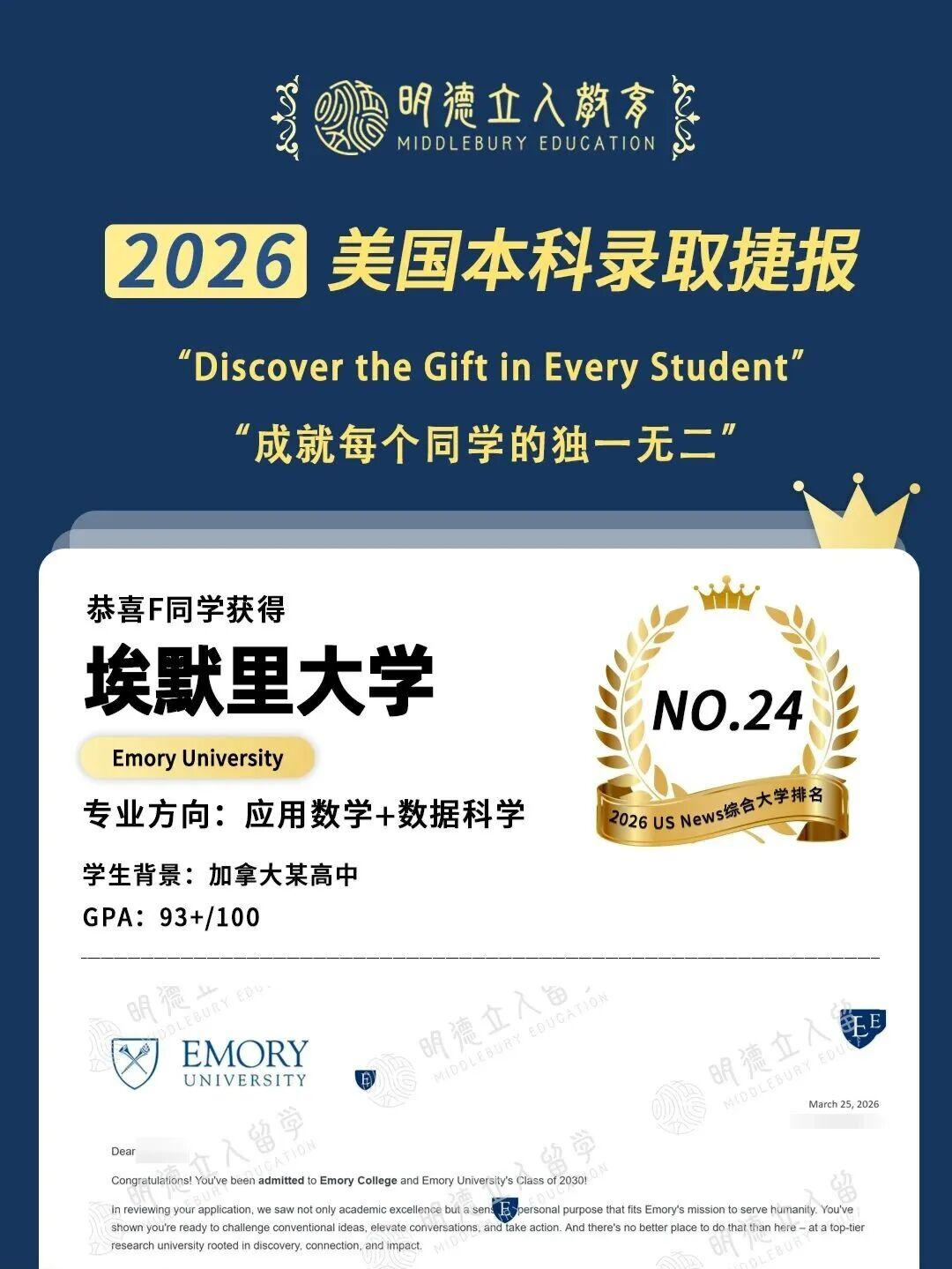 再次恭喜所有明德学员在26Fall申请季的收获!