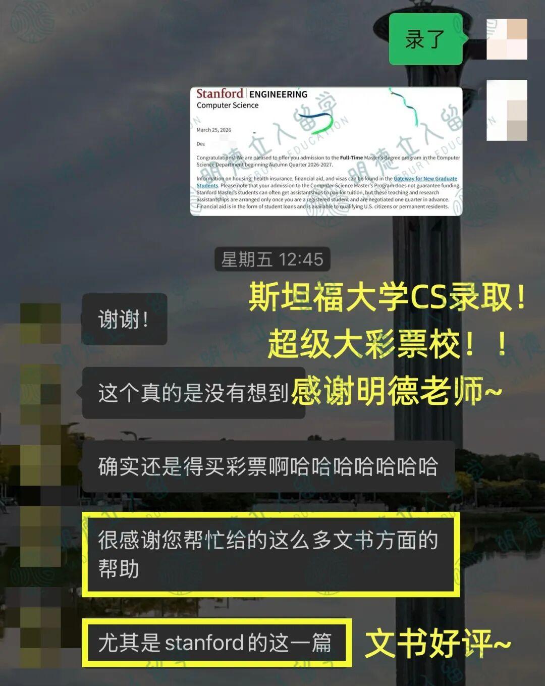 直到上个周,斯坦福录取到!!26Fall,拿下6枚顶尖录取!