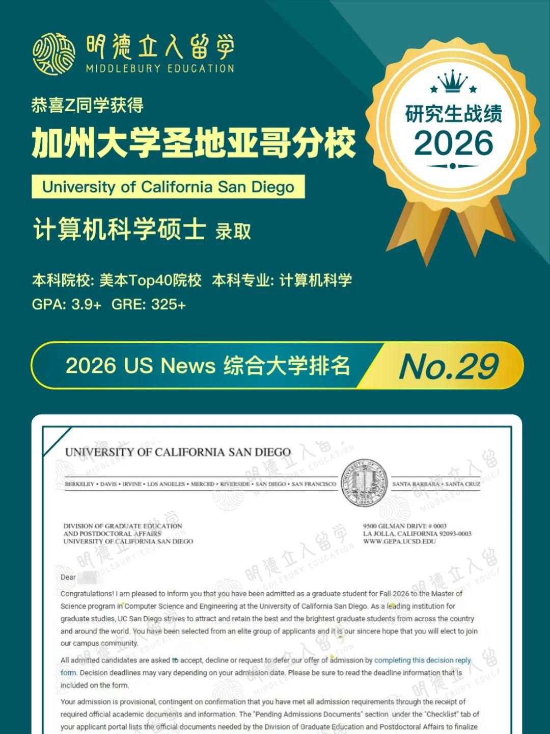 UCSD-计算机科学硕士offer
