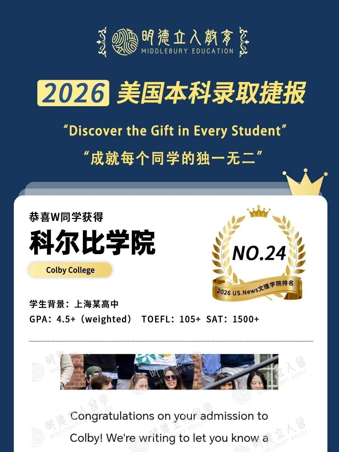 科尔比学院录取!