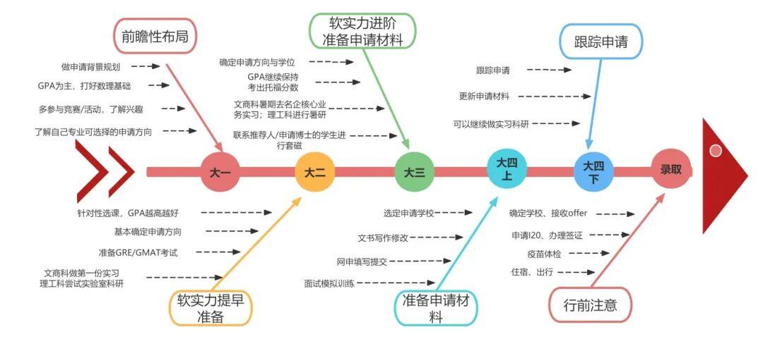 ● 制定时间表:准备材料、安排考试、按时提交申请。