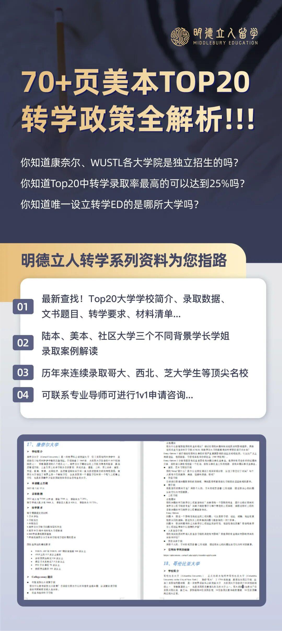 Top20大学学校简介、录取数据、文书题目、转学要求、材料清单...