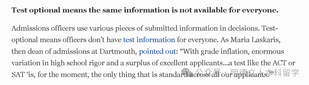 “当前存在高中成绩通胀、各校课程难度差异悬殊,且优秀申请者供过于求的问题……而ACT或SAT这类考试在当下是唯一能对所有申请者进行统一衡量的标准”。