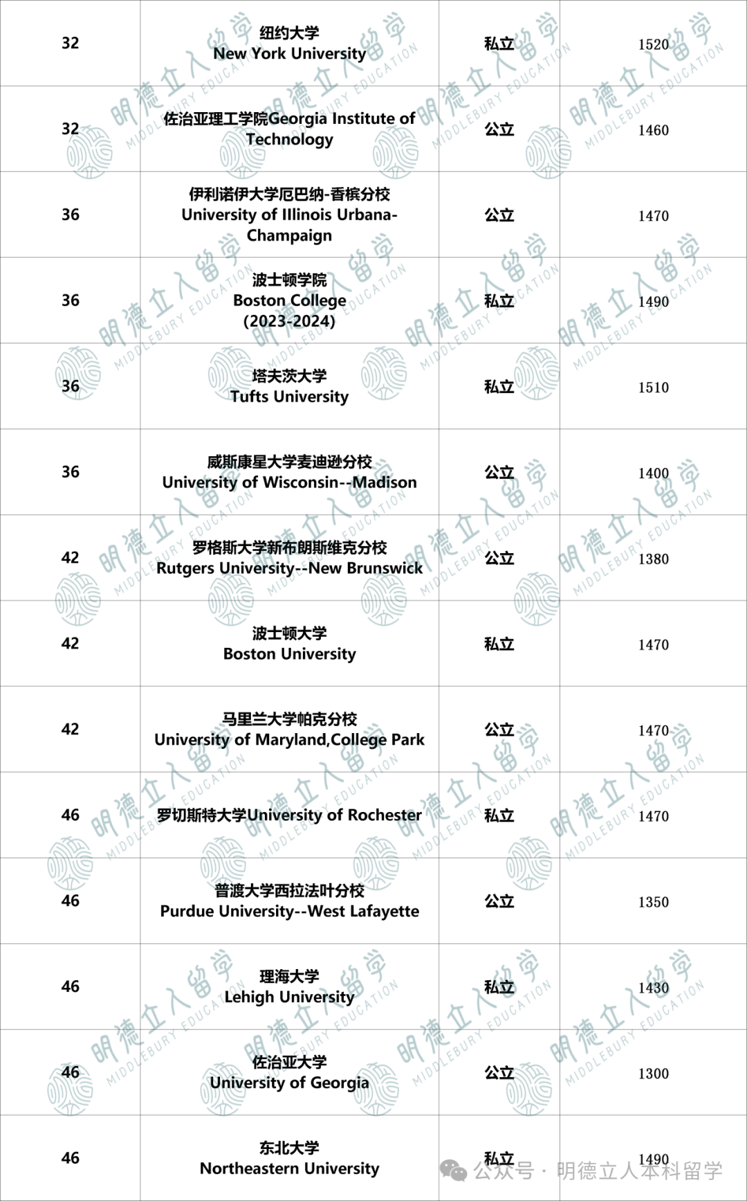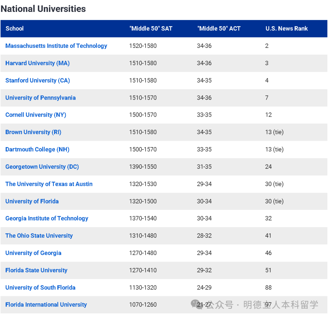 US.News对于未上报成绩区间或未明确是否要求提交标化成绩的院校,未纳入本次统计。