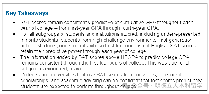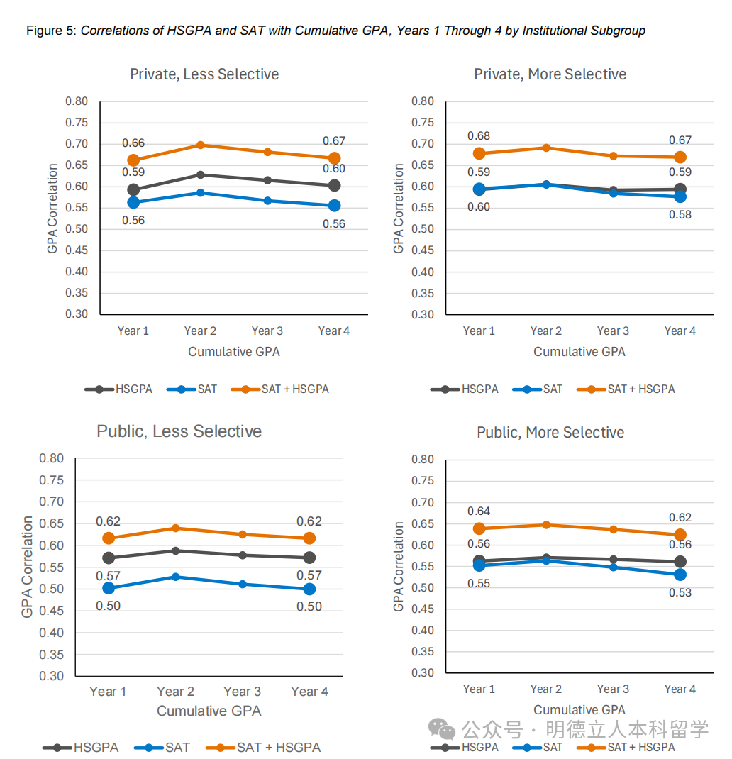 表明SAT的预测效力具有长期性,预测能力并非仅局限于大一,而是在大一至大四整个大学阶段都保持稳定。