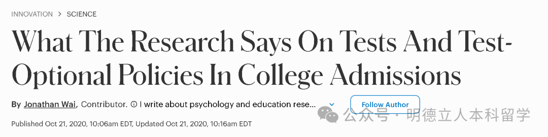 文章指出,目前大多数美国院校已采用标化可选(test-optional)或不看标化(test-blind) 政策。