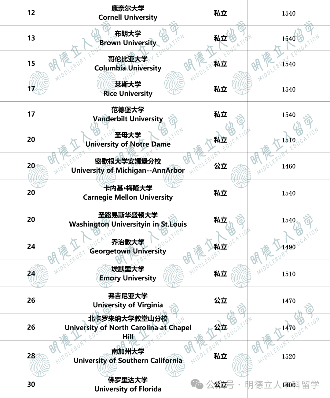 说真的,想要申美本的学生目标都是冲着Top50、ToP30去的,而以上16所学校中: