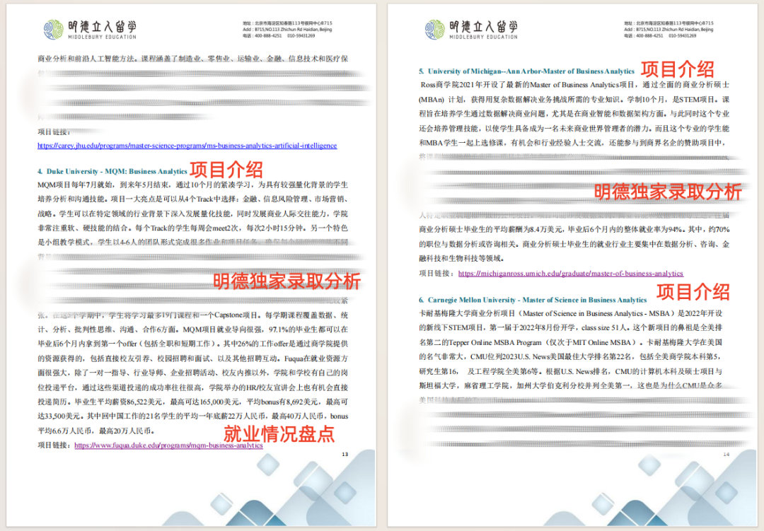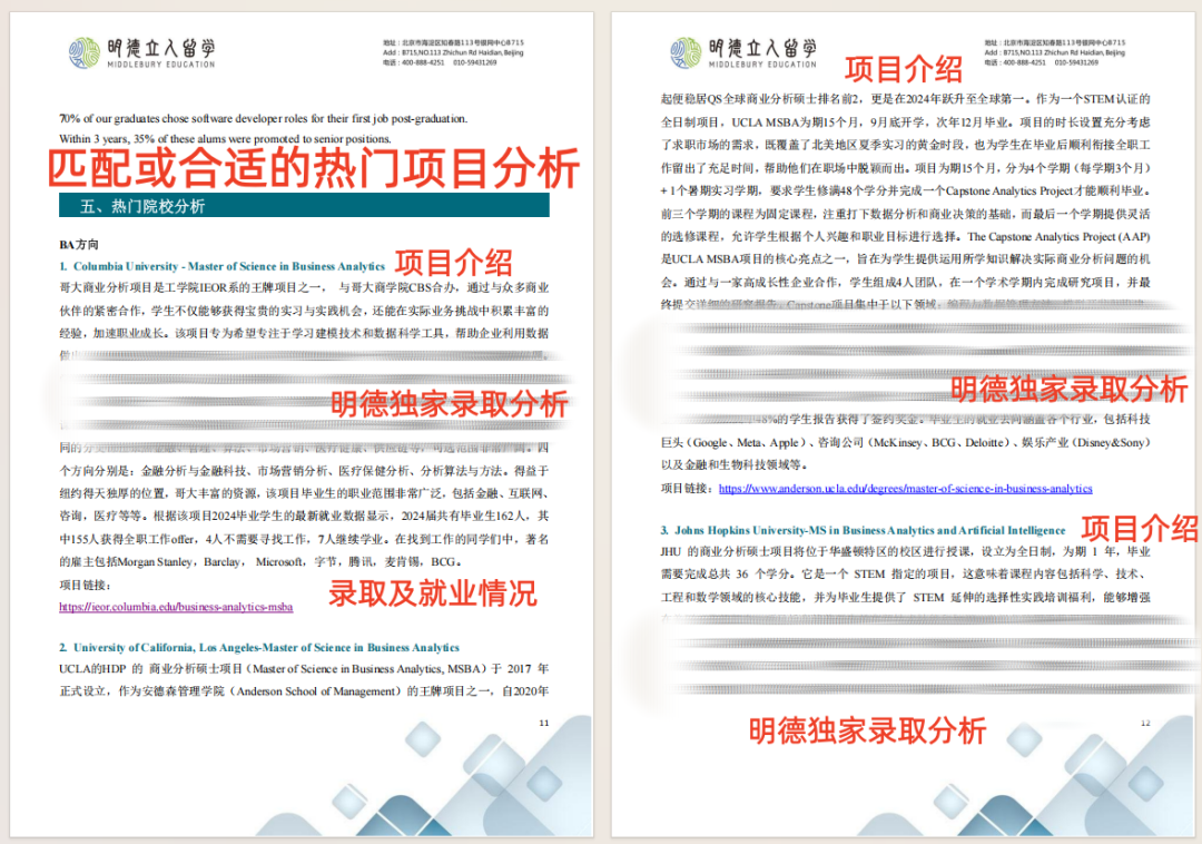 (2)明确院校录取偏好画像、项目核心亮点、申请注意事项、明德独家项目分析,让你知道 “为什么适合、为什么要冲”。