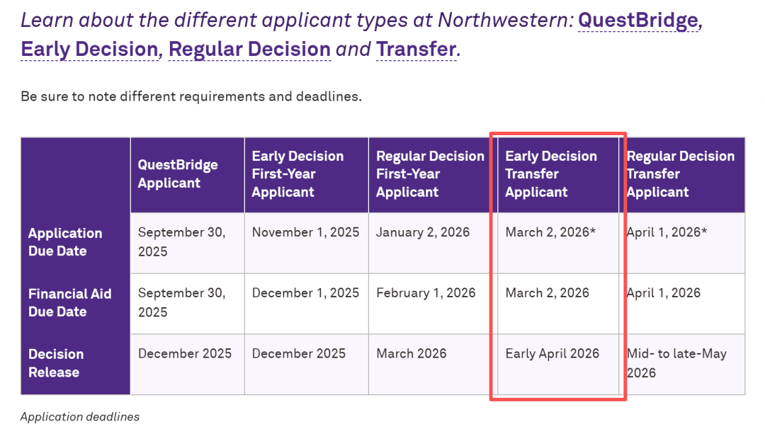 西北大学为本科生新增转学早申轮次(Early Decision Transfer),成为继芝加哥大学之后,全美第二所开放转学早申的顶尖大学。