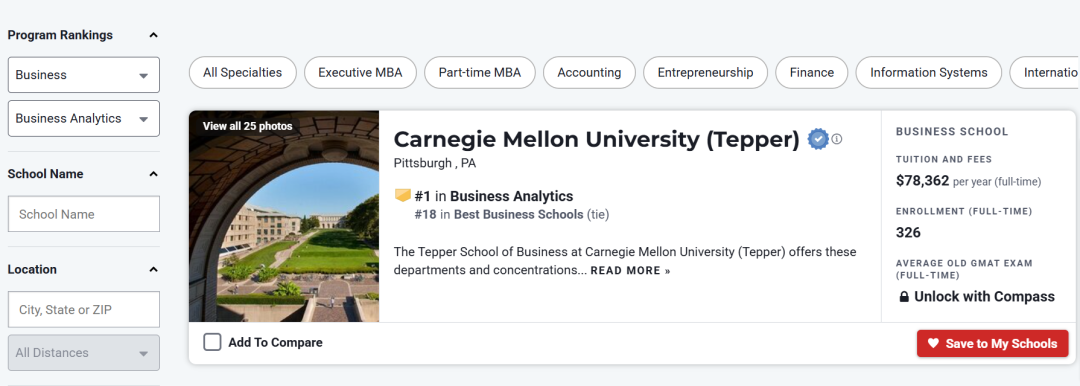 拿下了US.News商业分析学专业排名全美第一!超越了MIT斯隆商学院!