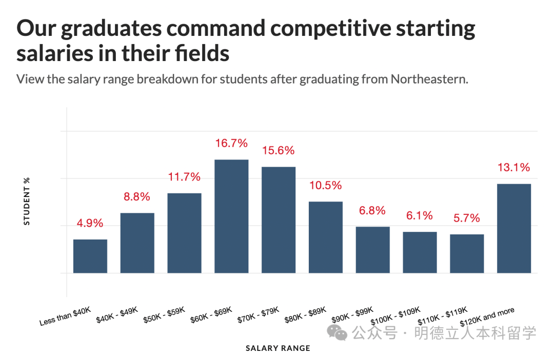 根据官网数据显示,74.5%的毕业生起薪超过了6万美金,其中12万美金以上的足足有13.1%。