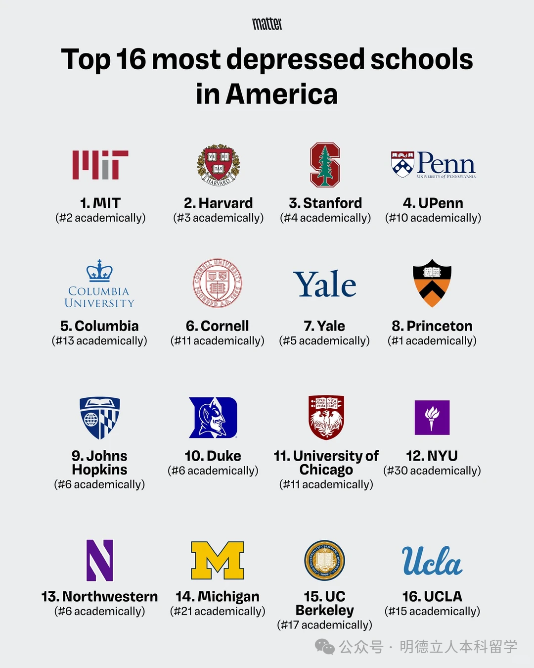 它根据学术声望和学生抑郁率,将美国大学进行了排名,结果发现: