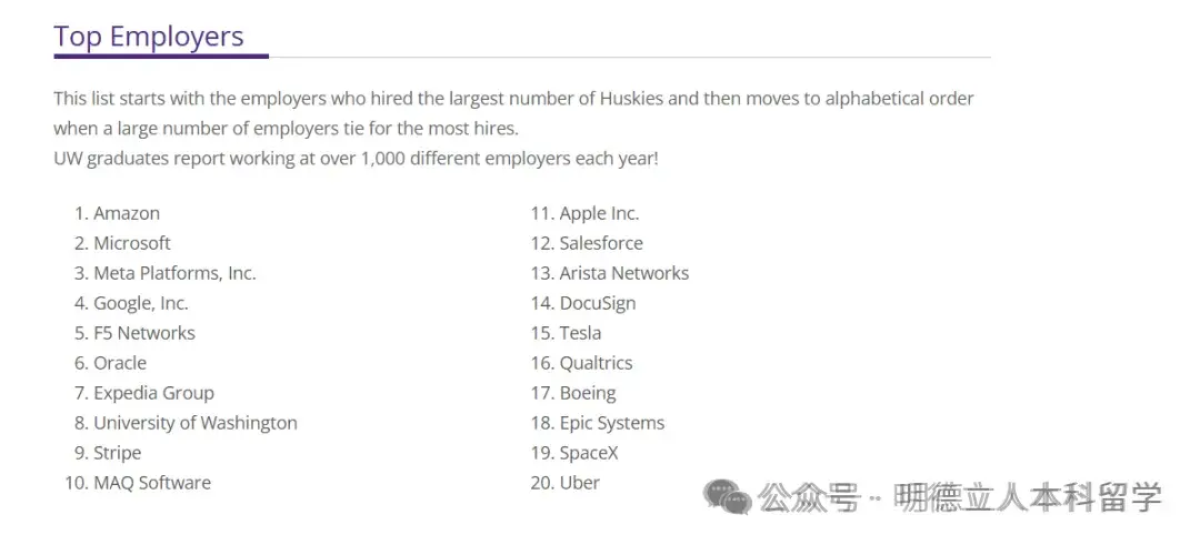 华盛顿大学毕业生顶级雇主名单 | 来源官网