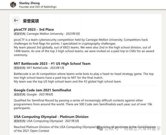 华裔男生Stanley Zhong的GPA4.42、SAT1590,MIT编程赛全球高中组第二,晋级谷歌编程赛半决赛,还创办公司、开展公益编程课。