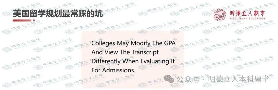 很多家长学生认为高中提供的GPA是 “最终得分”,大学会直接使用,因此只追求校内高分,忽视课程难度选择和成绩趋势,误以为高分就能证明学术能力、提升适配度。